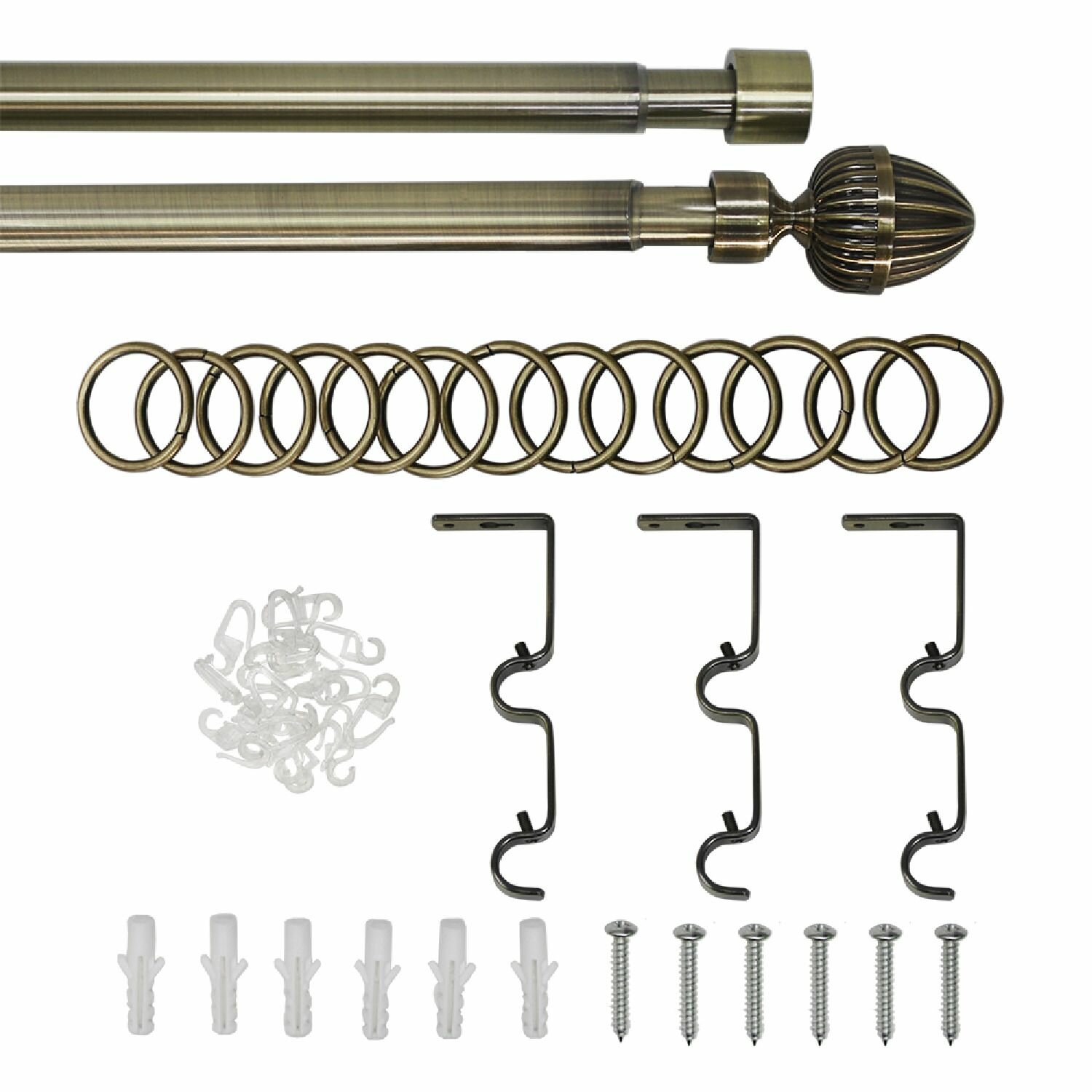 Купить Карниз двухрядный Эскар телескопич, наконечник орех, 160-320 см, золото антик