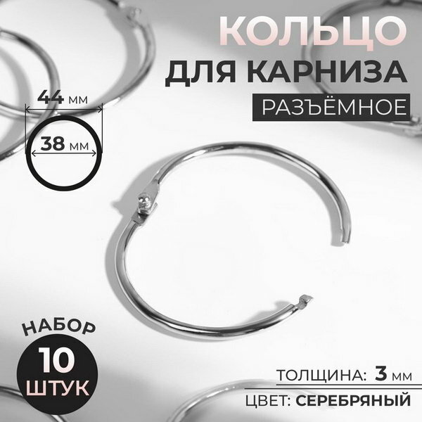 Кольцо для карниза, d - 38/44 мм, 10 шт, цвет серебряный интересное: