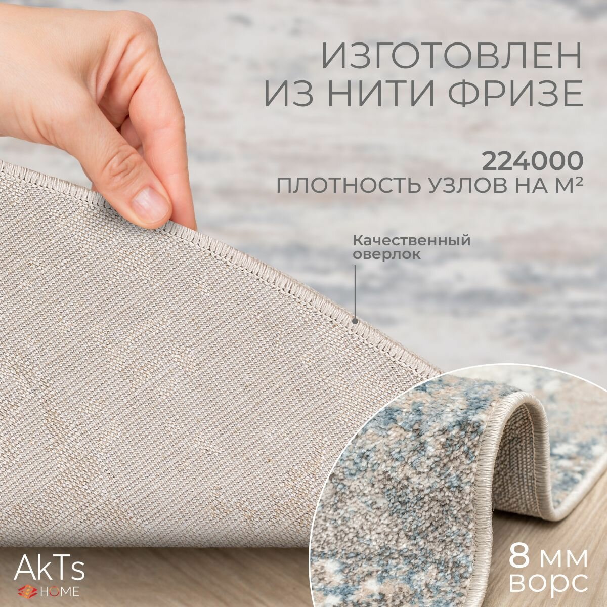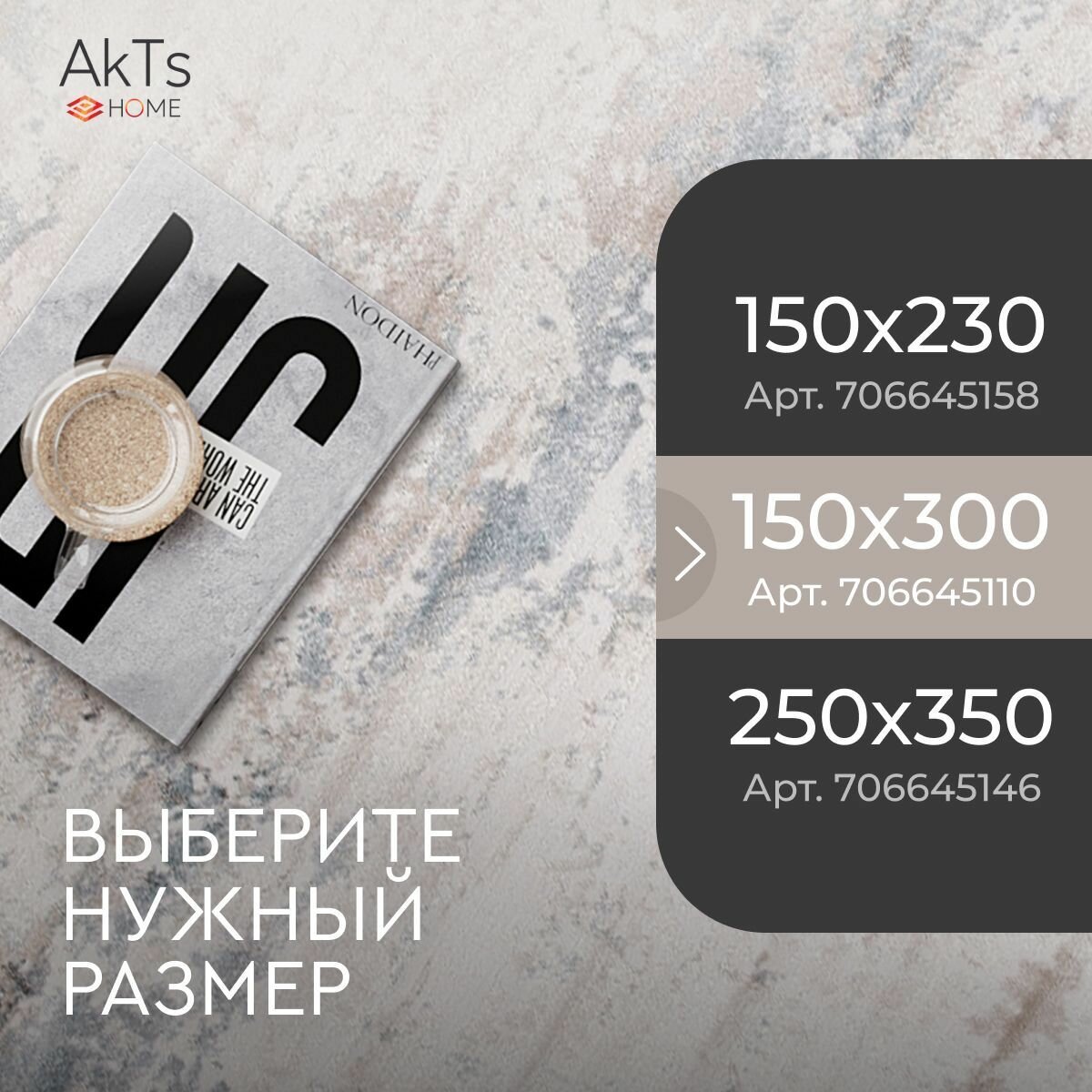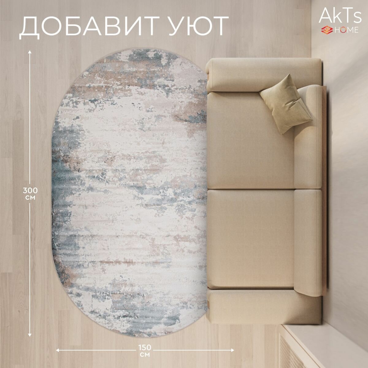 Ковер на пол AkTs комнатный 150 на 300 овальный в гостиную, зал, спальню, кухню прихожую, кабинет, комнату