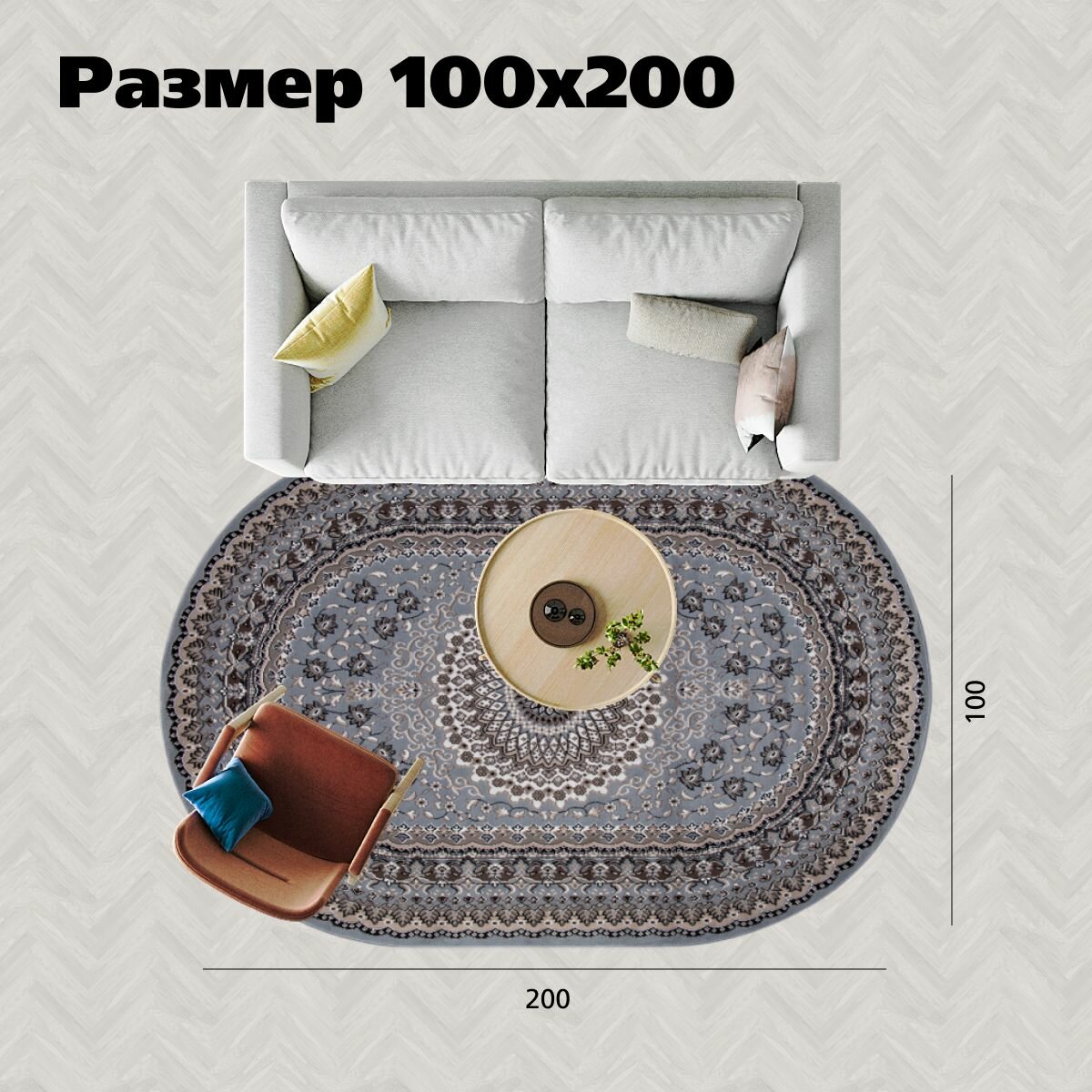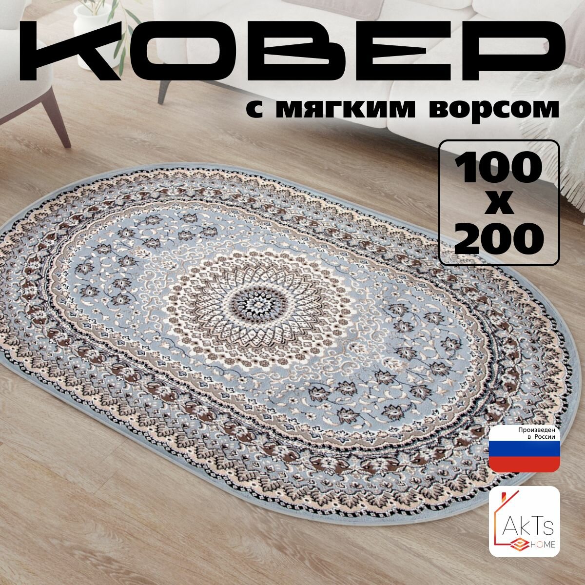 Российский овальный ковер на пол 100 на 200 см в гостиную, зал, спальню, кухню, детскую, прихожую, кабинет, комнату интересное: