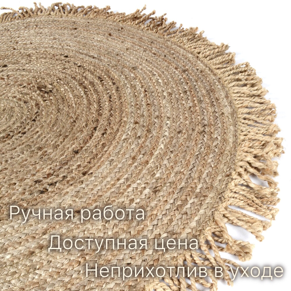 Экоковрик джутовый, круглый с кистями 80х80, бежевый интересное: