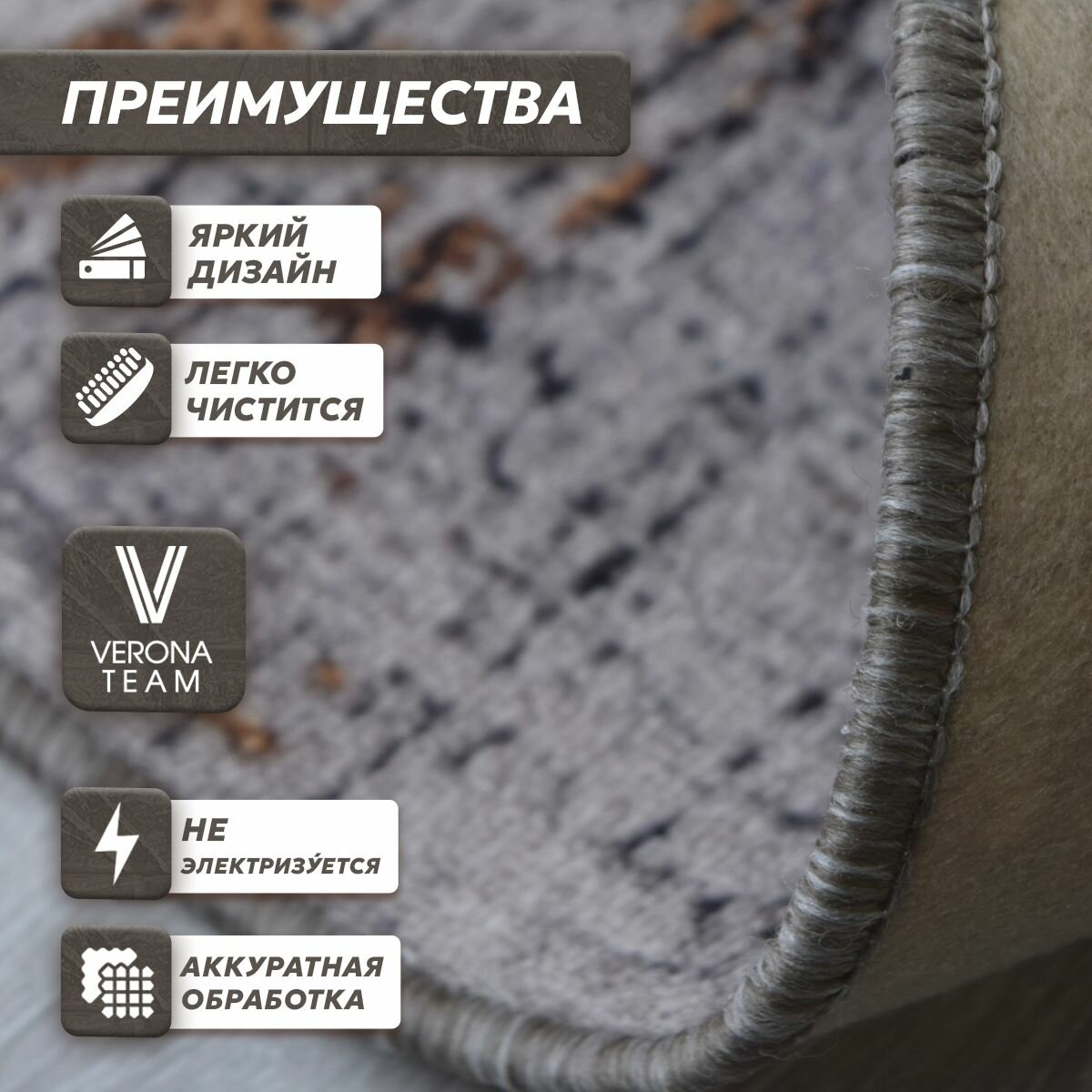 Ковер на пол, Коврик прикроватный в прихожую спальню гостиную VERONA TEAM 100х160 см