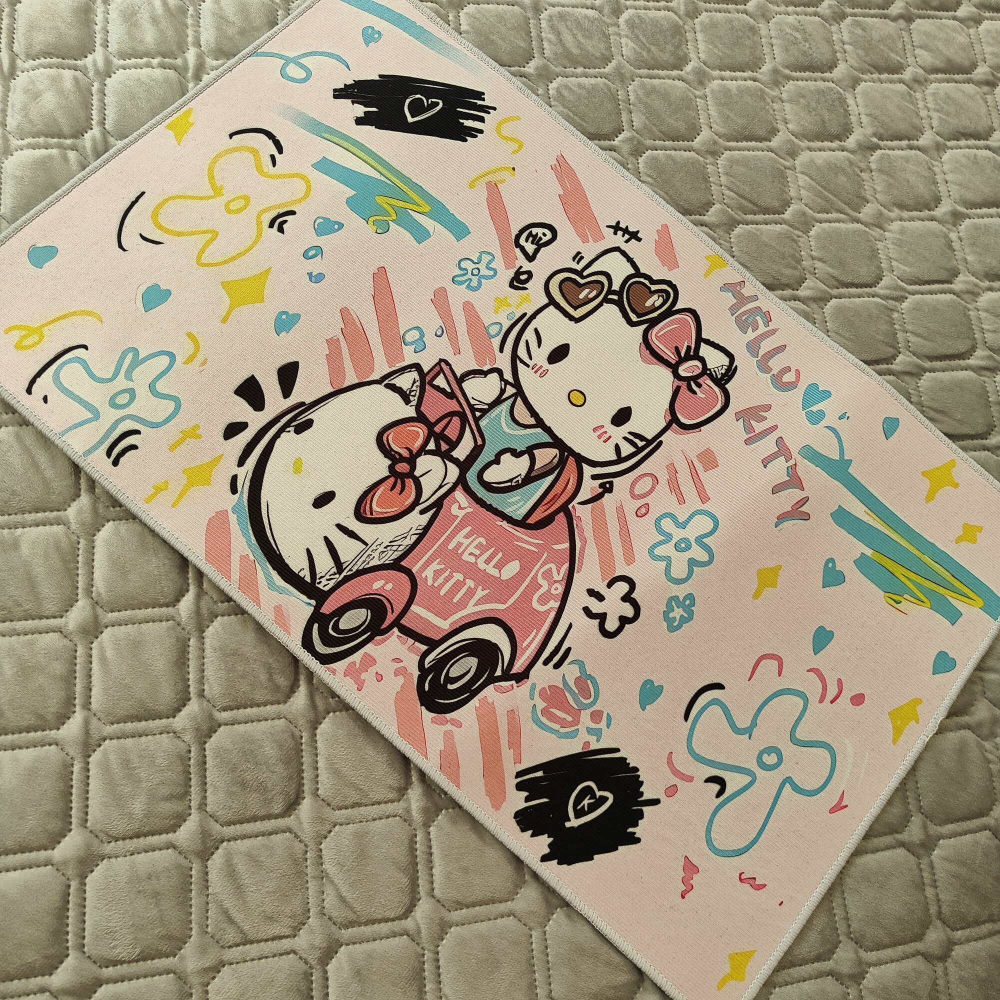 Ковер безворсовый Kuromi/Kitty 50x80см. Коврик универсальный Куроми/Китти, в ванную комнату, в прихожую, противоскользящий интересное: