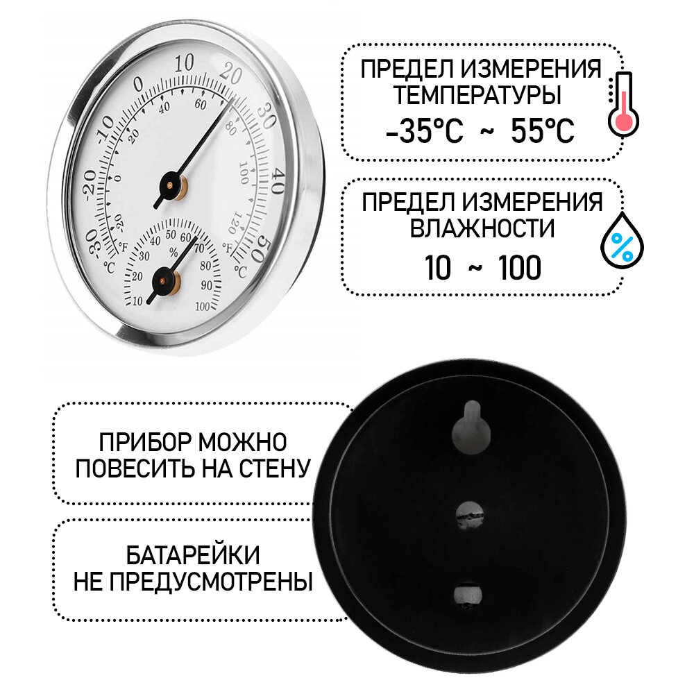 Механический термометр-гигрометр TH103P-S 6х6х2 см интересное: