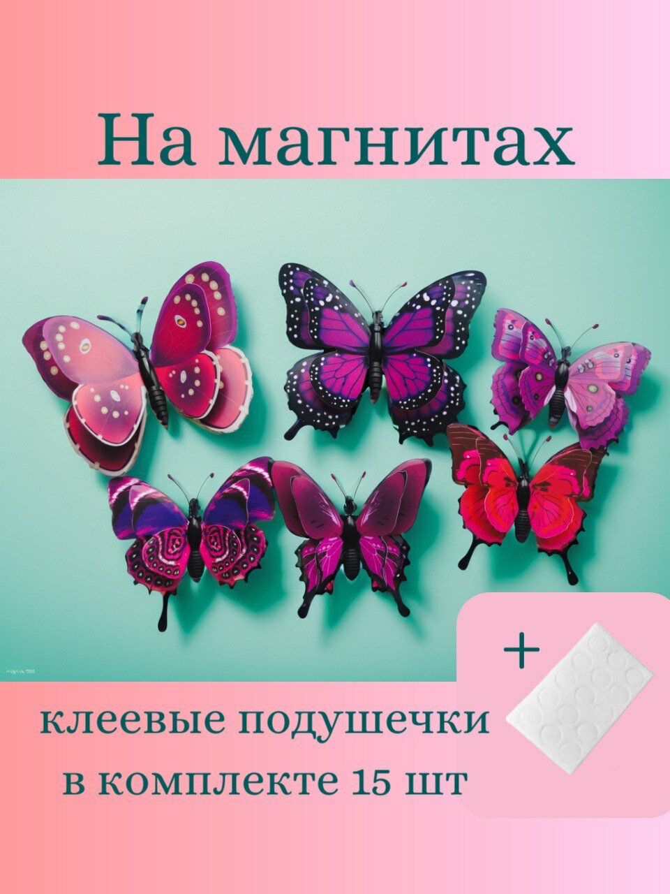 Наклейки бабочки декоративные на магнитах 3Д для интерьера дома. Бабочки для декора