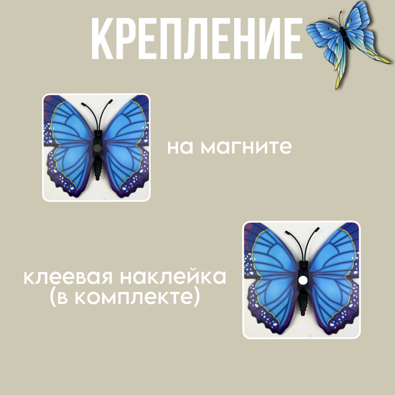 СохранитьНаклейки интерьерные, декоративные бабочки 3D с магнитом на стену для декора, набор украшений на стену "Бабочки" синие интересное: