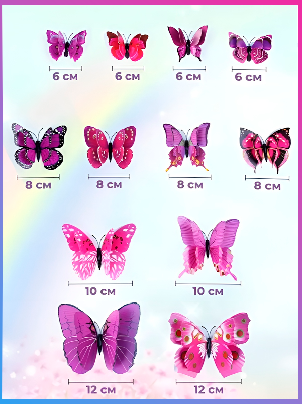 Бабочки декоративные наклейки на магнитах 3д. Для интерьера дома, детских комнат. Набор бабочек смешанные 2
