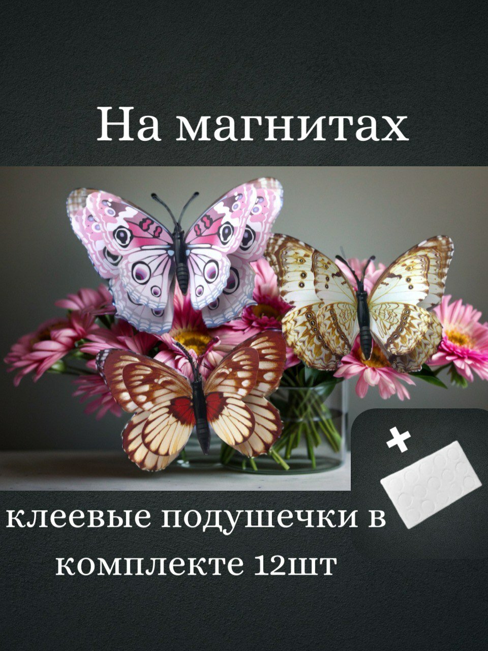 Купить Наклейки бабочки декоративные на магнитах 3Д для интерьера дома. Бабочки для декора