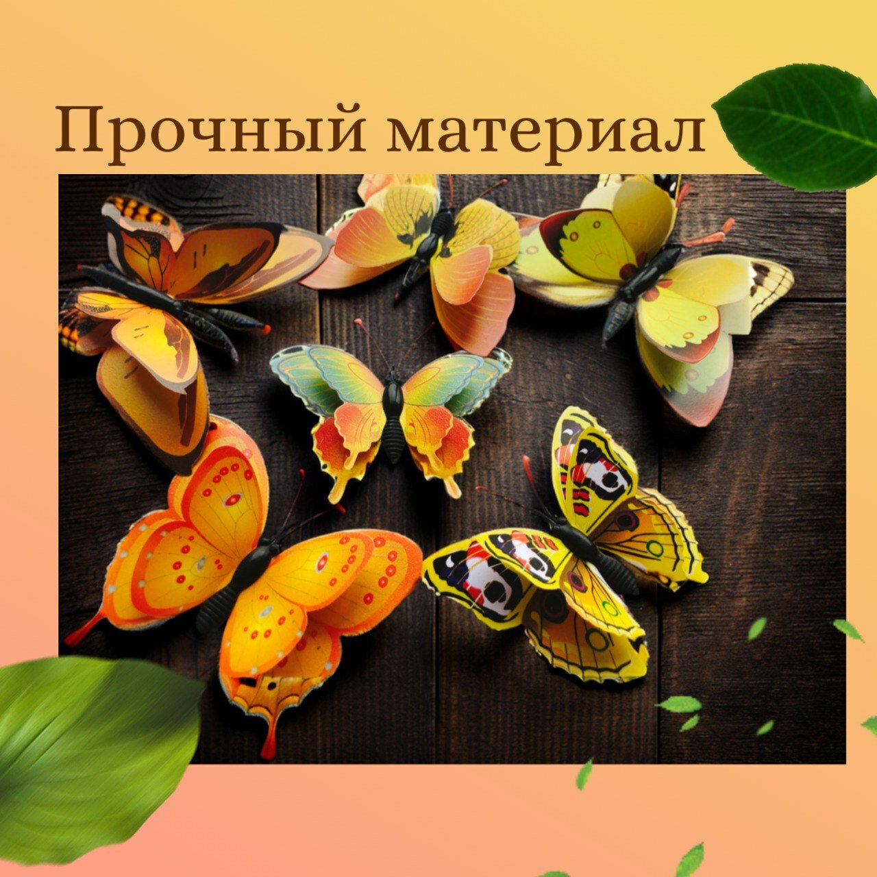 Наклейки бабочки декоративные на магнитах 3Д для интерьера дома. Бабочки для декора