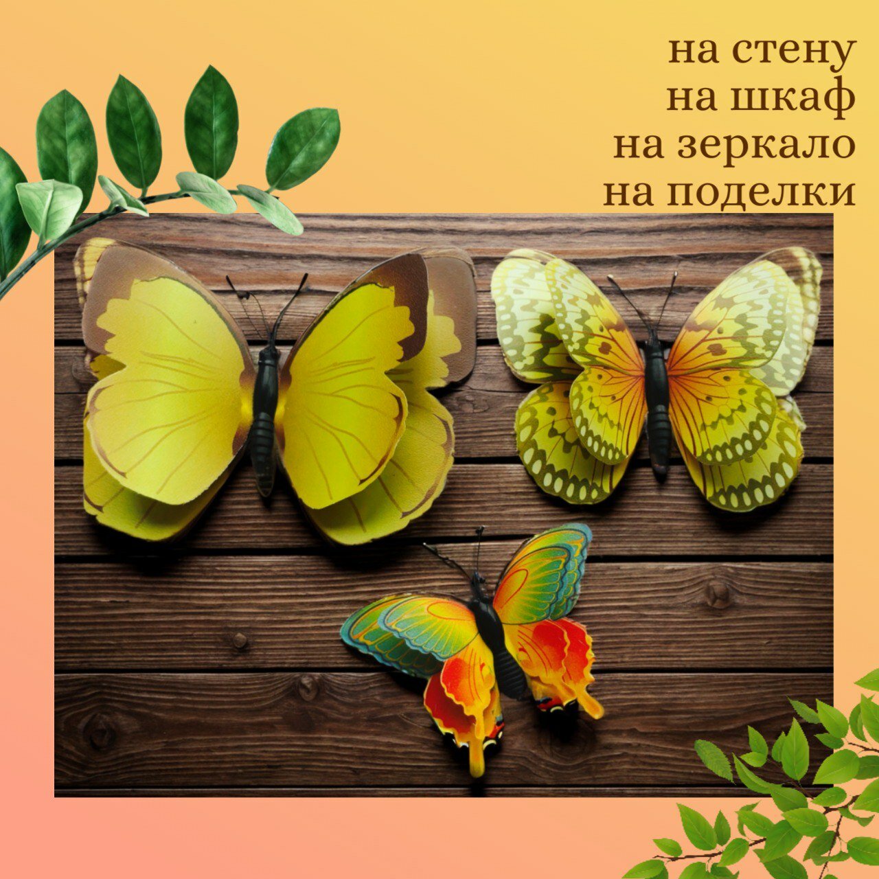 Купить Наклейки для интерьера желтые бабочки 3д. Декор мебели и стен