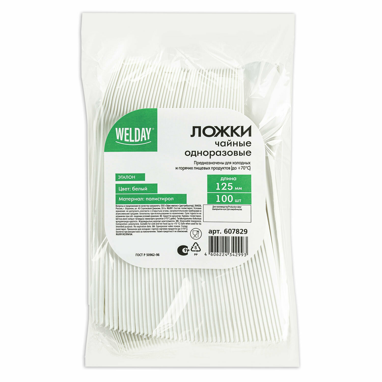 Купить Ложки чайные пластиковые одноразовые (одноразовая посуда) 125 мм Комплект 100 штук, Эталон, белые, WELDAY, 607829