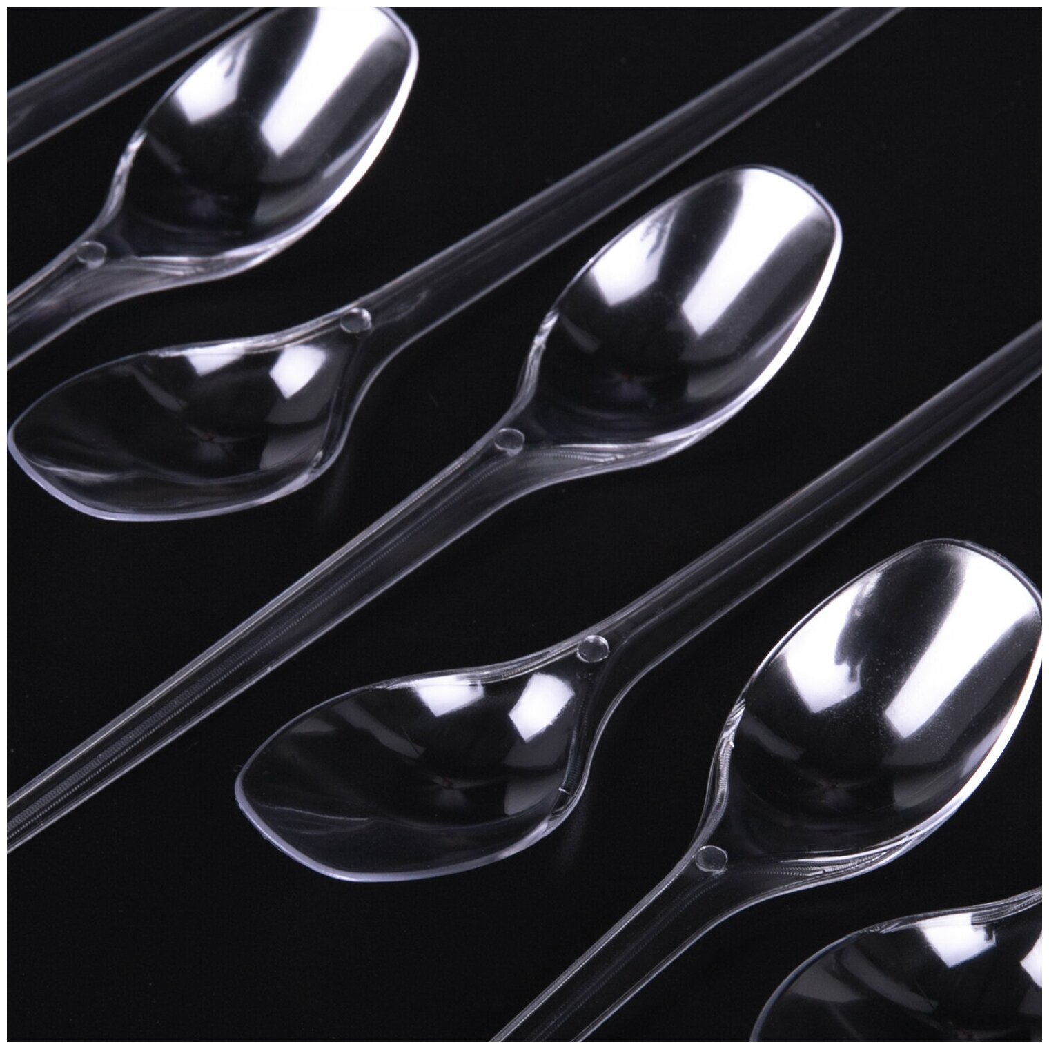 Ложка чайная одноразовая пластиковая 125 мм, прозрачная, комплект 100 шт, эталон, WELDAY, 607831