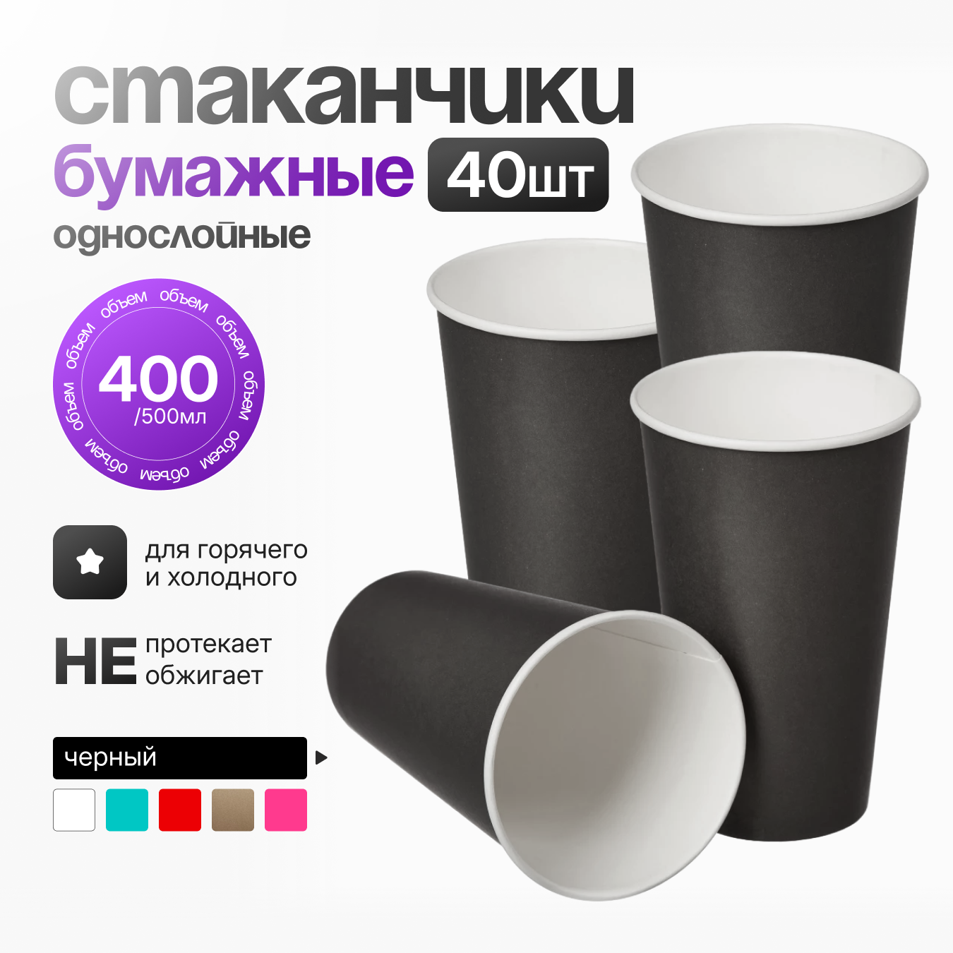 Стакан однослойный бумажный 450 мл "Черный", (40шт) интересное: