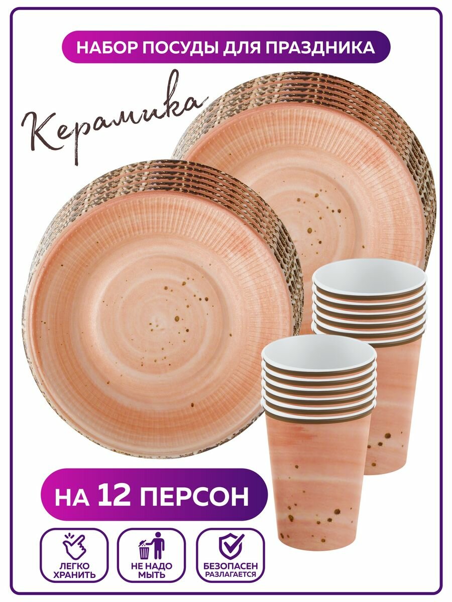 Одноразовая посуда для праздника на день рождения, детская, бумажная Керамика . Одноразовые тарелки и стаканы на 12 персон интересное:
