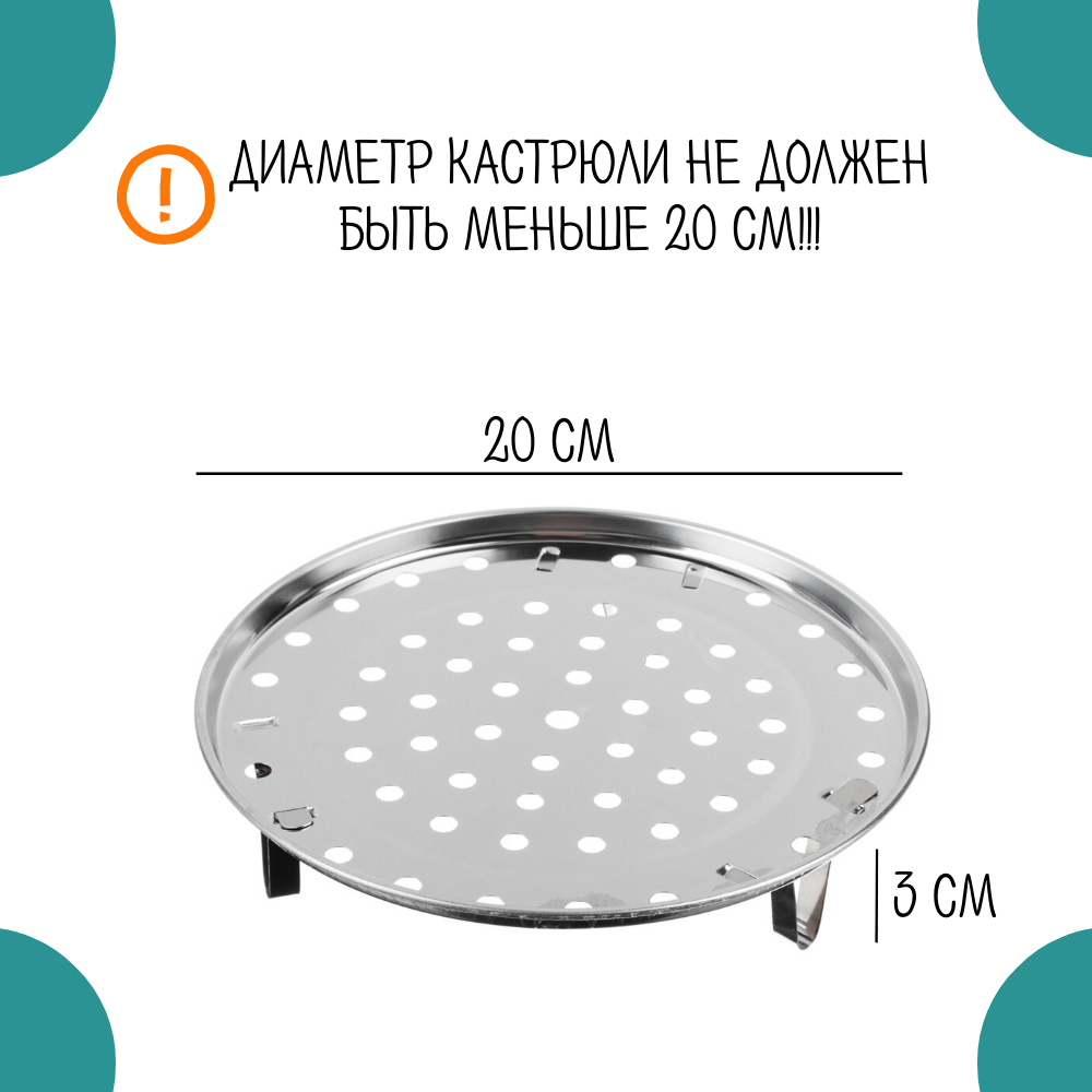 Пароварка-вставка для кастрюли, для газовой плиты, с ножками, диаметр 20 см, нержавеющая сталь интересное: