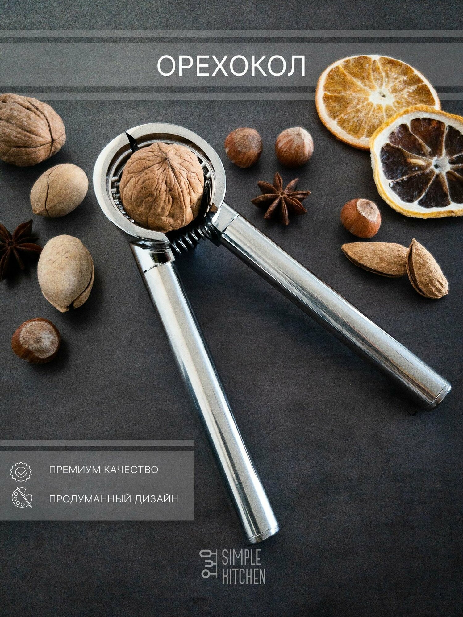 Орехокол SIMPLE KITCHEN, Орехокол для грецкого ореха, фундука, макадамия, миндаль и тд. Серия - Премиум интересное: