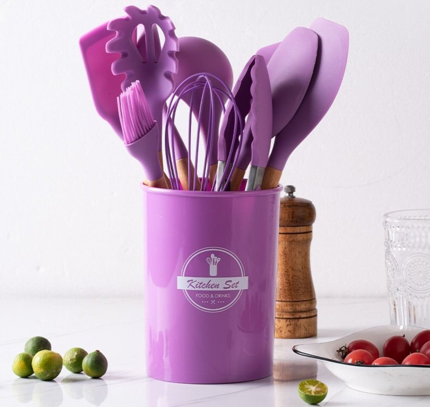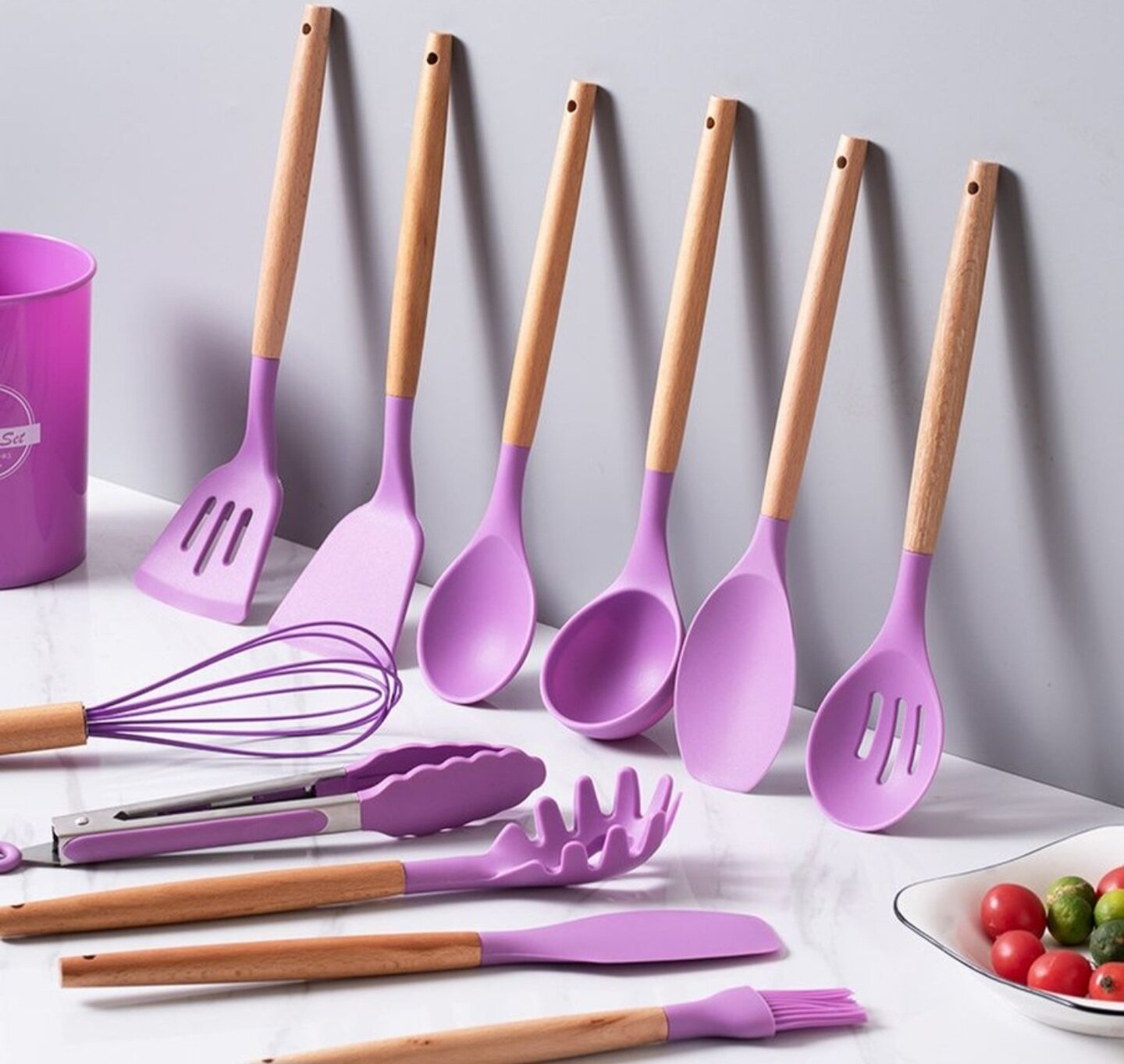 Купить Набор кухонных принадлежностей из бука и силикона, 12 предметов -Идеальный подарок, фиолетовый