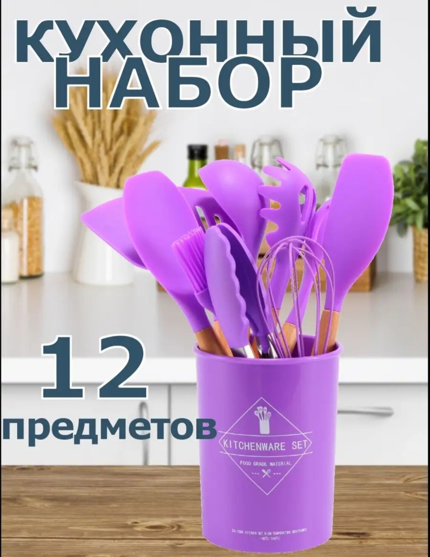 Набор кухонных принадлежностей из бука и силикона, 12 предметов -Идеальный подарок, фиолетовый интересное: