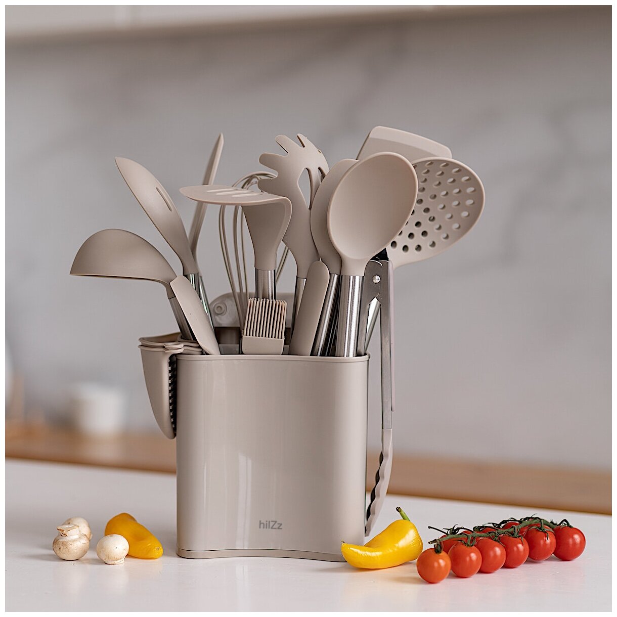 Набор кухонных принадлежностей hilZz из силикона и нержавеющей стали 18 предметов, светло-серый