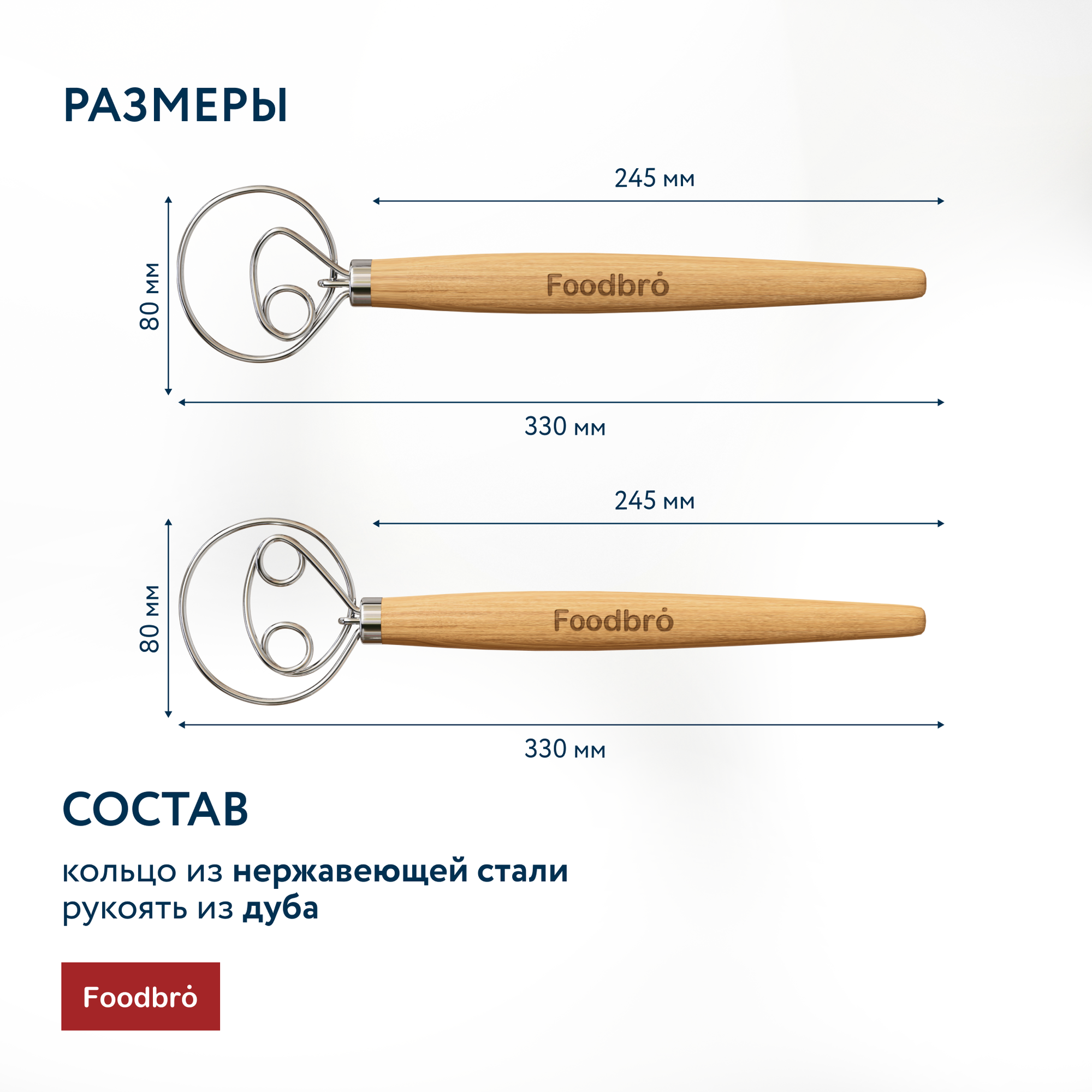 Купить Датский венчик Foodbro, набор из 2 штук