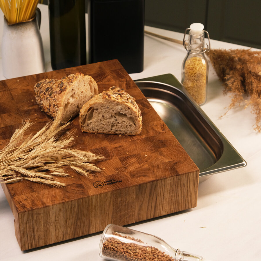 Разделочная доска Dad's material "Натуральное Дерево", дуб, торцевая, нескользящее покрытие, 39х20х3.7см