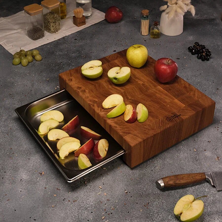 Доска разделочная с торцевым выдвижным контейнером гастроемкостью массив дуба