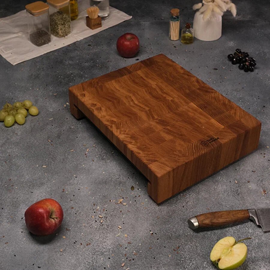 Разделочная доска Dad's material, деревянная, торцевая, нескользящая, натуральное дерево 30x38x8 см