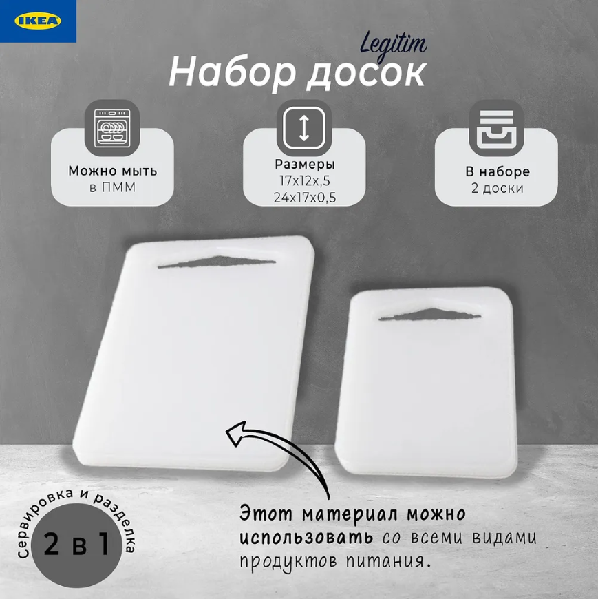 | Подробная комплектация | Разделочная доска IKEA LEGITIM, белый, набор 2 шт ИКЕА ЛЕГИТИМ |
