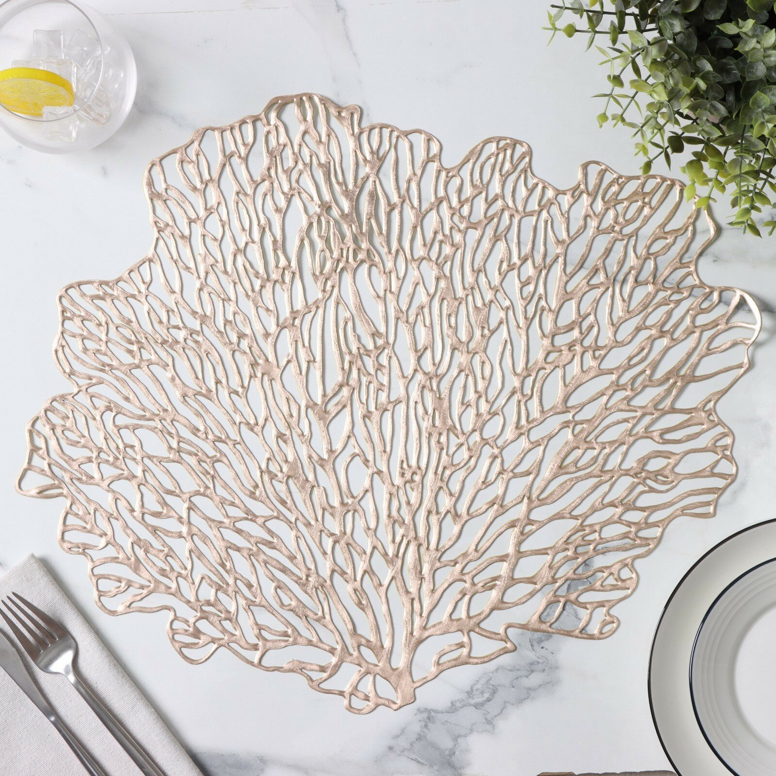 Набор салфеток сервировочных на стол Доляна «Кораллы», 4 шт, 48×39 см, цвет золотой