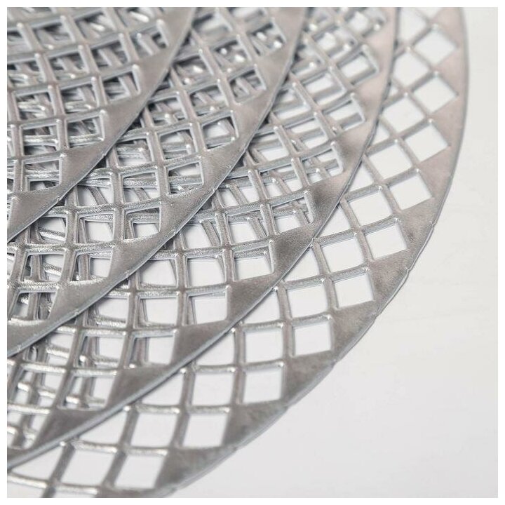 Набор салфеток сервировочных на стол Доляна «Вира», 4 шт, d=38 см, цвет серебряный