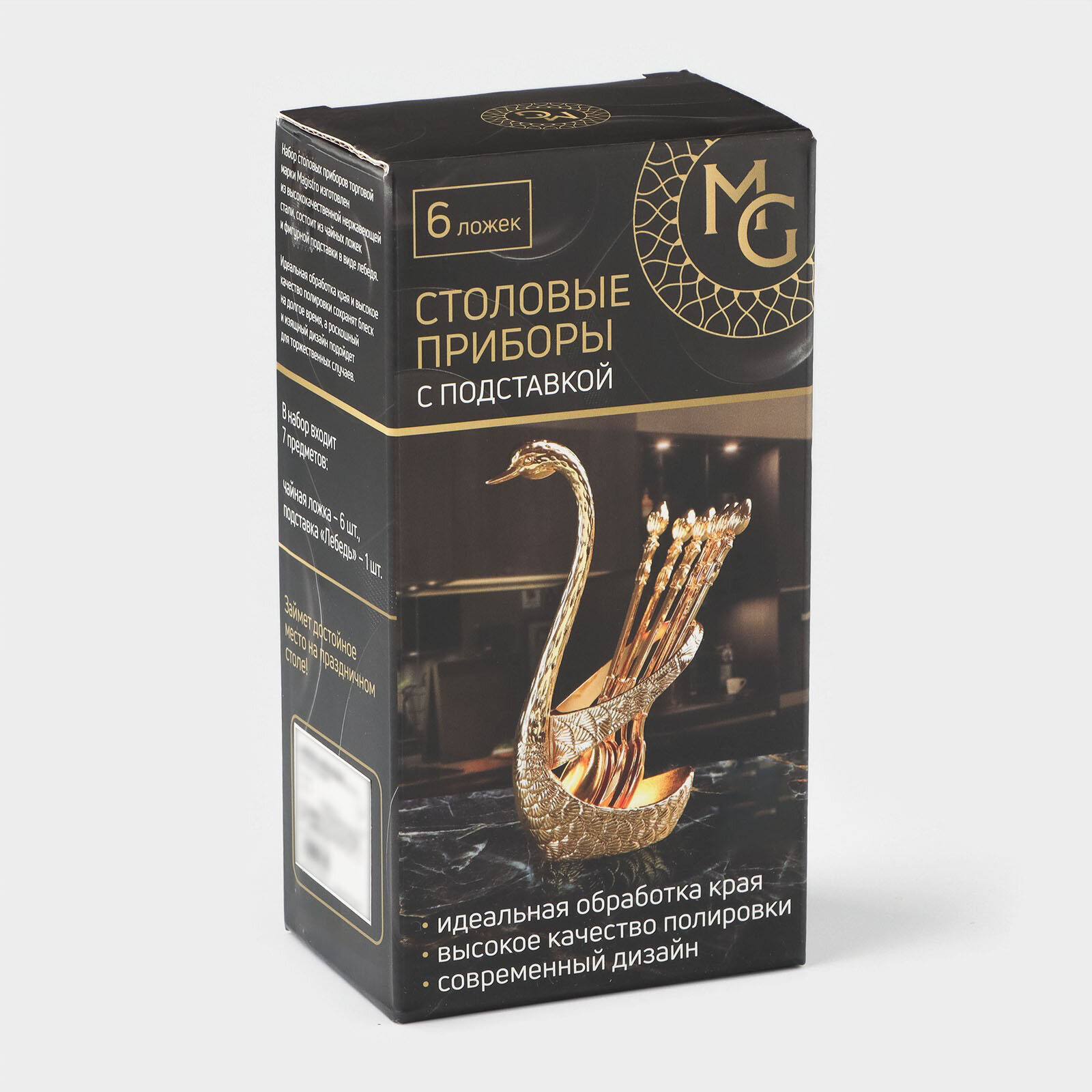 Чайные ложки набор Magistro «Серебряный лебедь», 7,5×5×14 см, 7 предметов, цвет серебряный