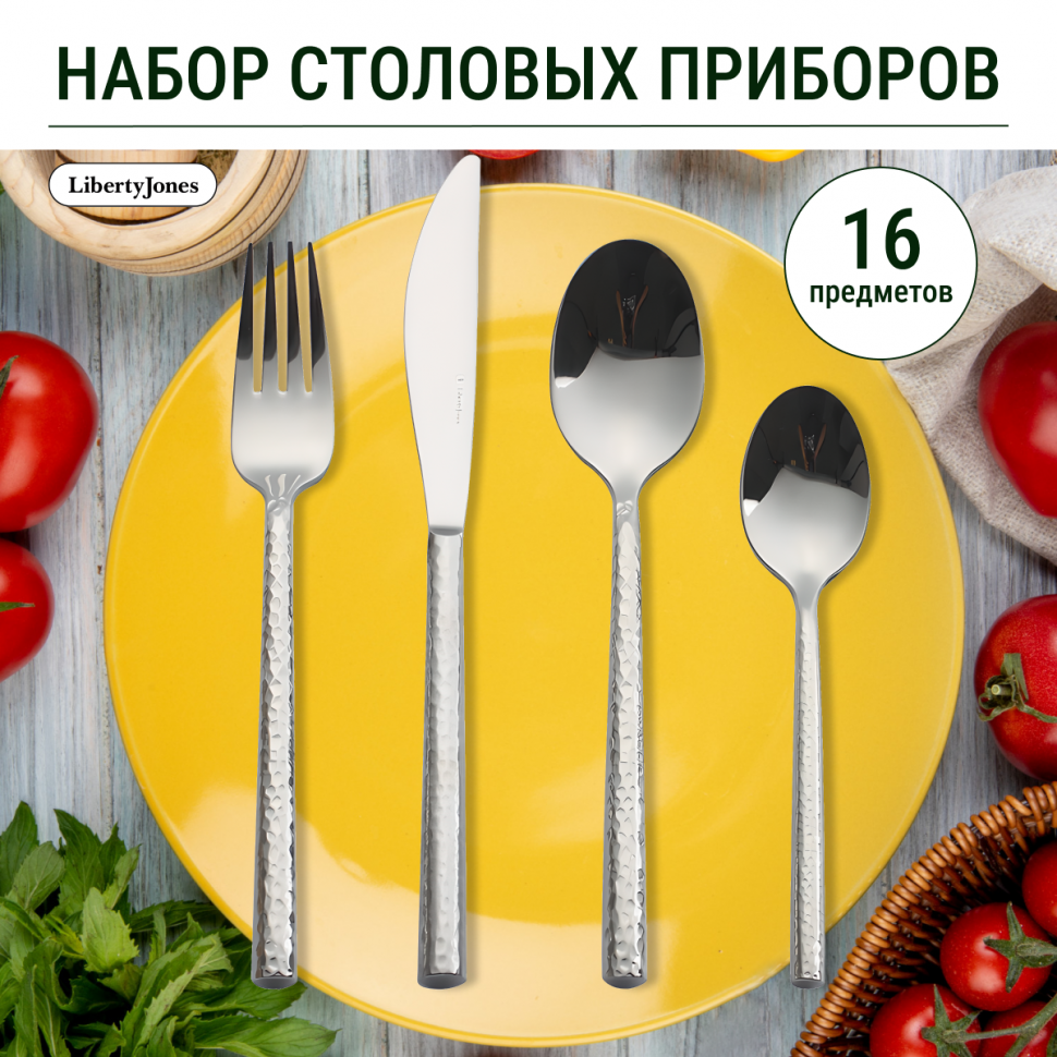 Купить Набор столовых приборов Silverware серебристые на 4 персоны 16 предметов ложка вилка нож ребристые Liberty Jones LJ0000201
