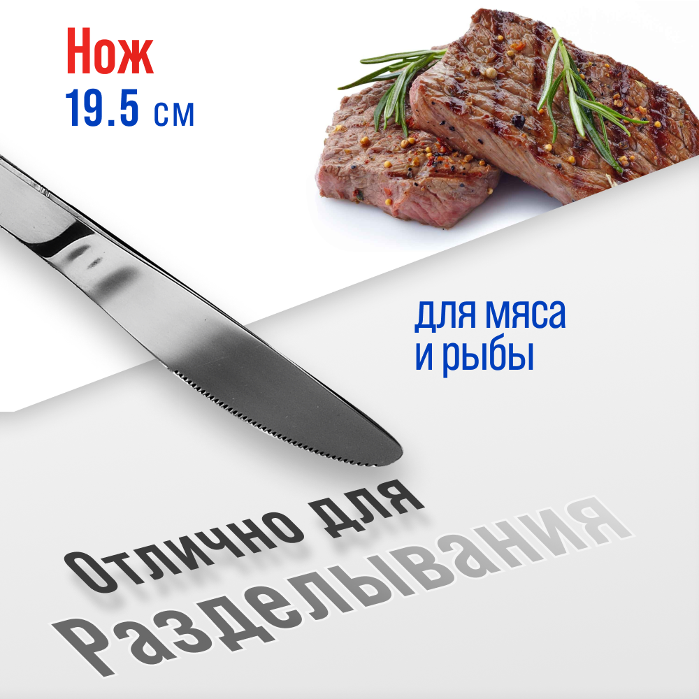 | Дополнительная информация | Размер приборов: столовая ложка 19х4 см, столовая вилка 20х2,6 см, чайная ложка 14,8х3 см. |