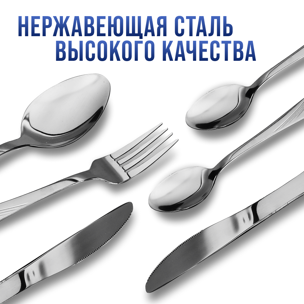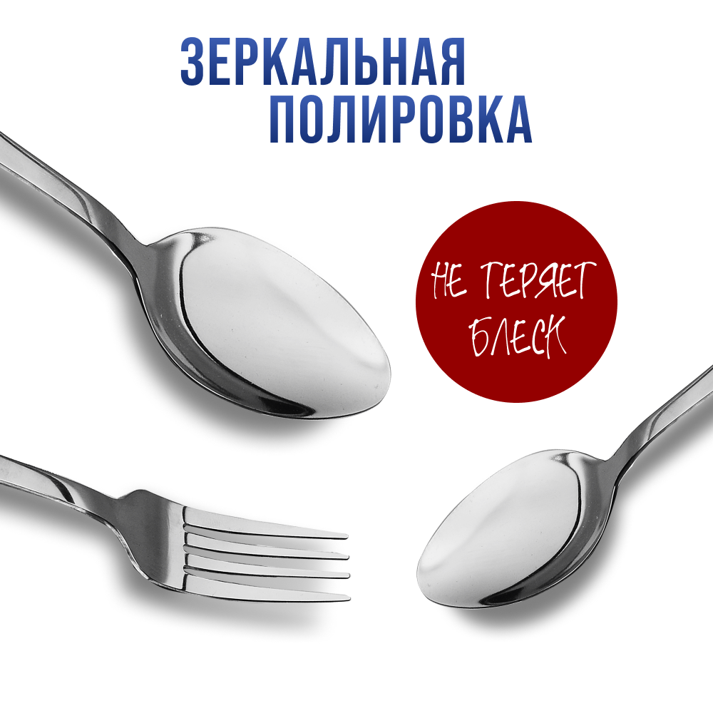 | В набор входит | 6 столовых ложек, 6 столовых вилок, 6 чайных ложек,упаковка |