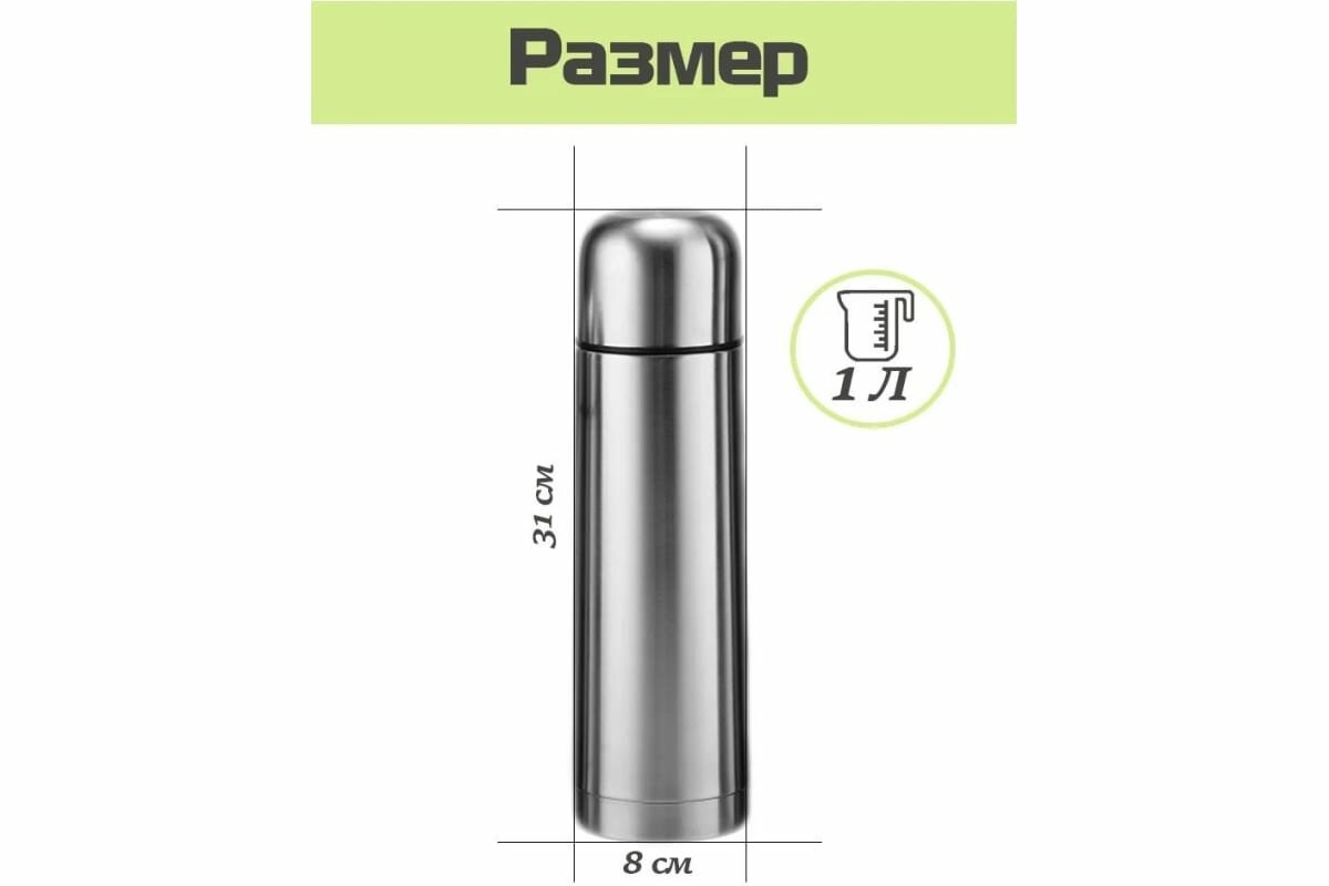 Термос ударопрочный из нержавеющей стали с крышкой-чашкой, 1 л, серебристый интересное: