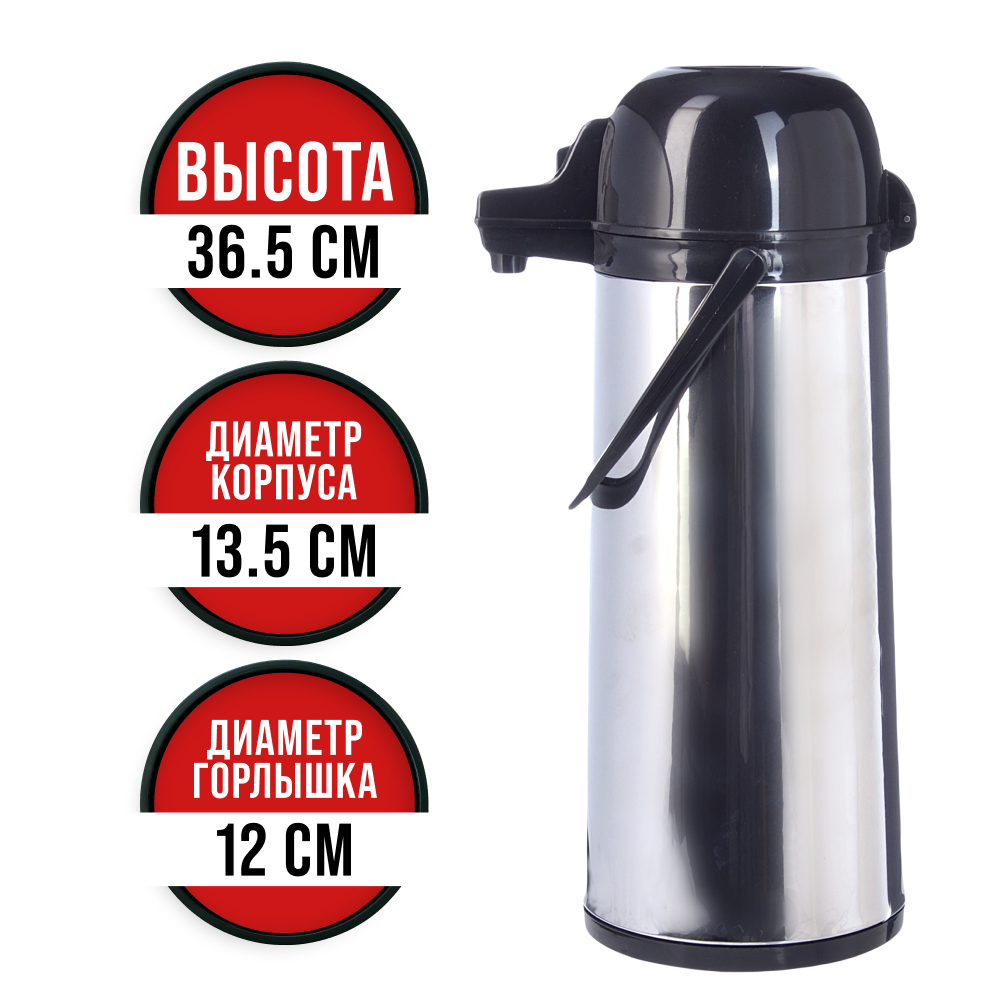 | Дополнительная информация | Диаметр корпуса: 13,5 см. Диаметр горловины: 12 см. Диаметр дна: 13,5 см. Высота термоса: 36,5 см. С ручкой. |