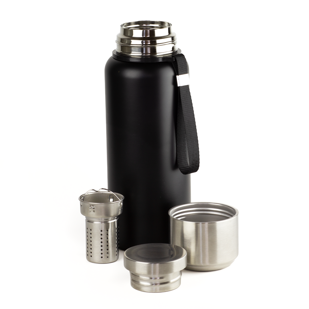 Купить Термос черный 1 литр с ситечками для чая и кофе Mejor для рыбалки и туризма, с силиконовым основанием, сталь SUS 316