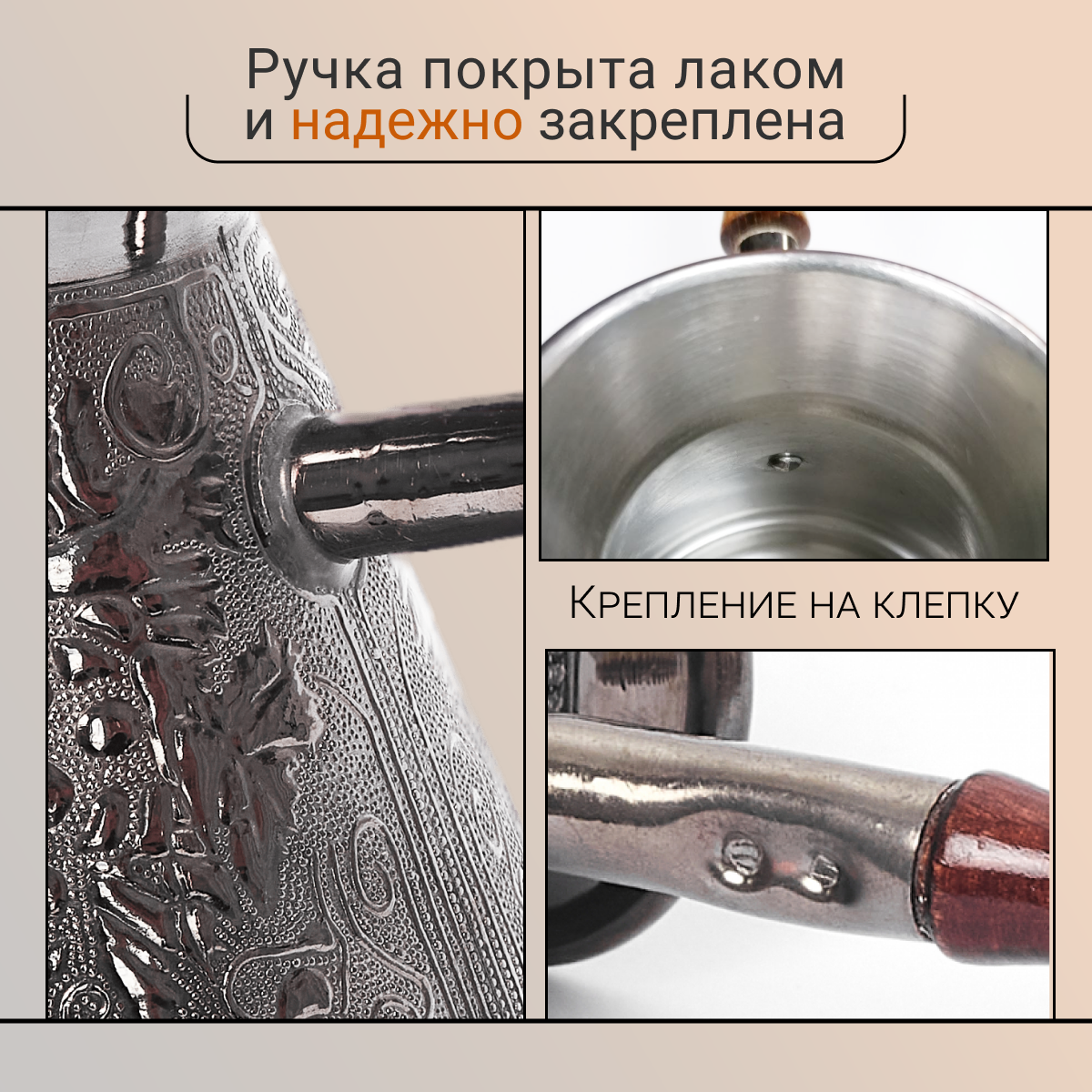 Турка для кофе медная "Виноград 0,5", турка 500 мл., серебристый. интересное:
