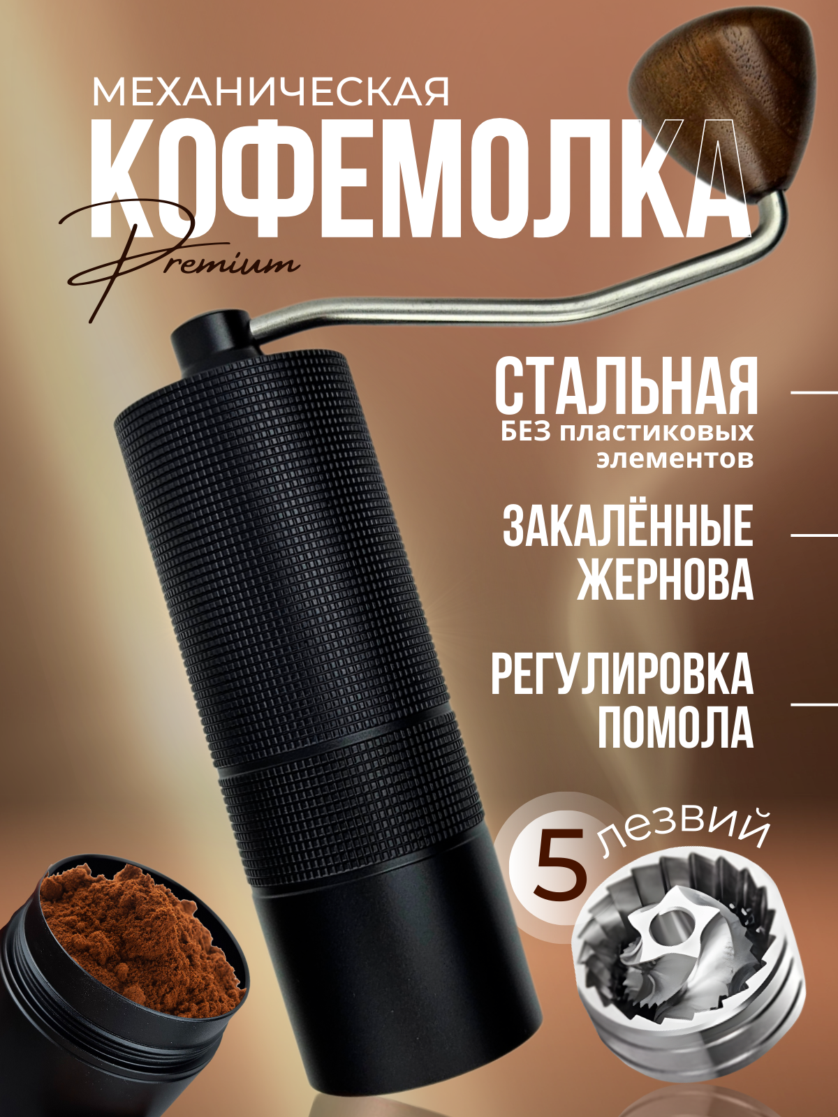 Кофемолка ручная жерновая, мельница для кофе - 5 лезвий интересное: