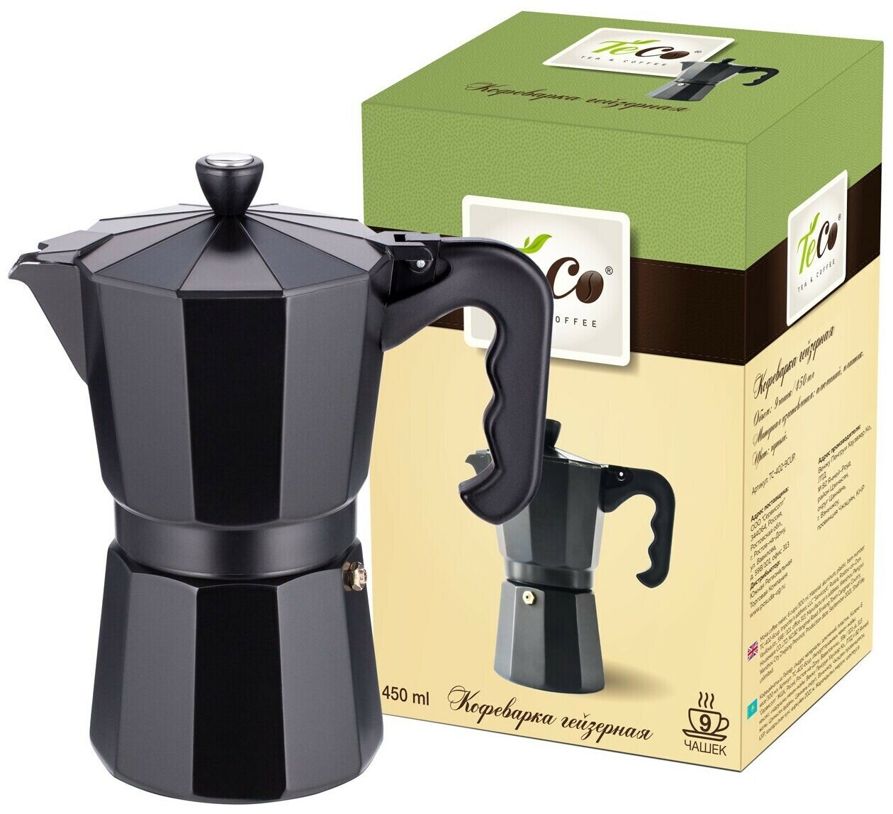 Купить Кофеварка гейзерная TECO TC-402-9 cups черн, 450 мл, алюминиевая