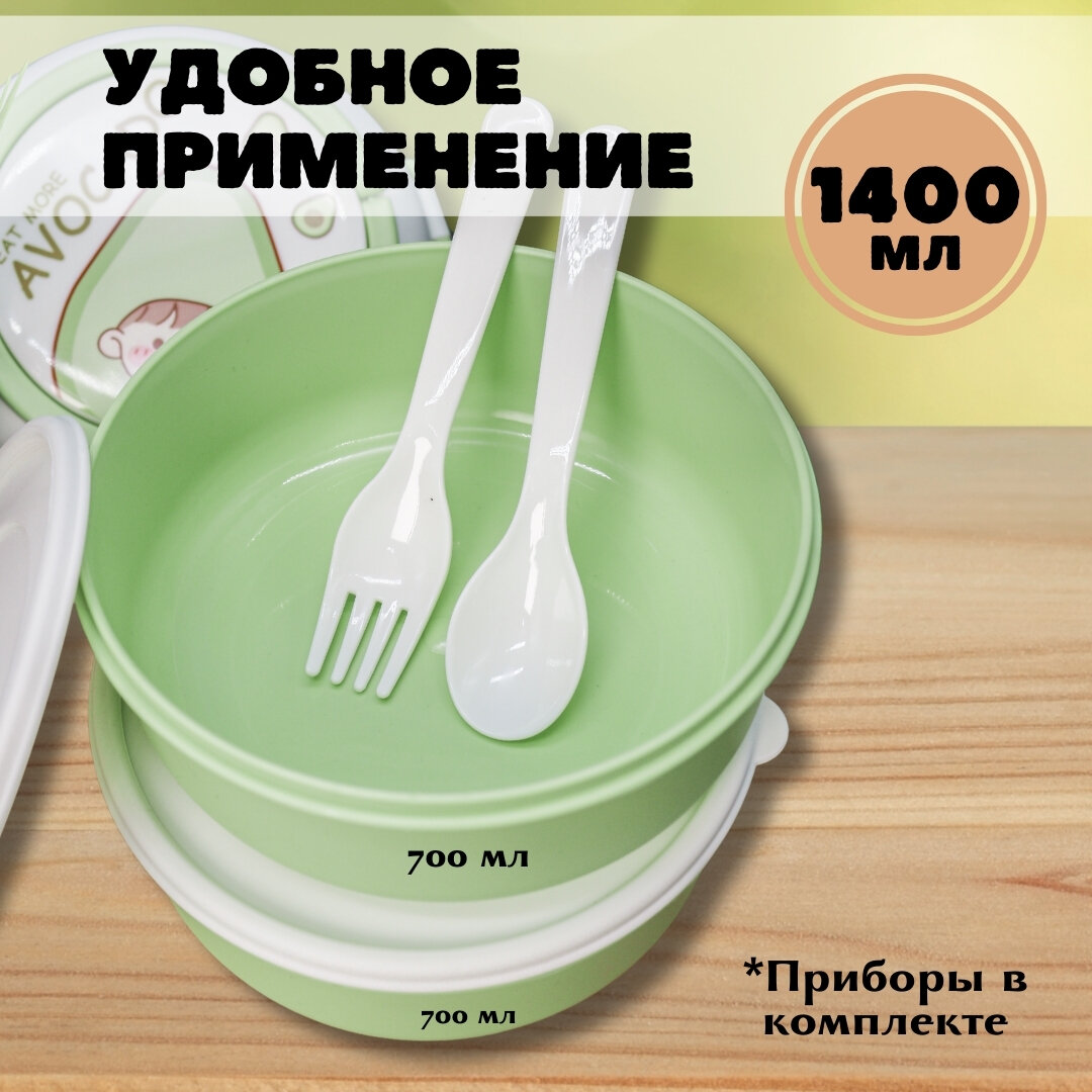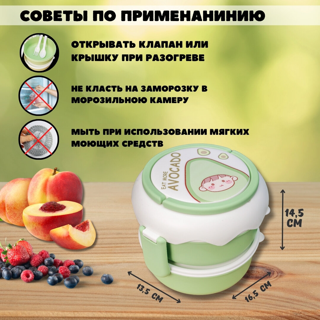 Ланч-бокс для еды Circle eat more avocado green с вилкой и ложкой интересное: