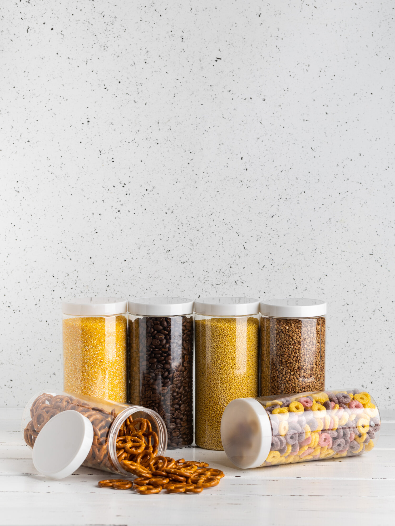Банки для круп и хранение сыпучих продуктов контейнеры 1,5 л/8 штук круглые с белой крышкой