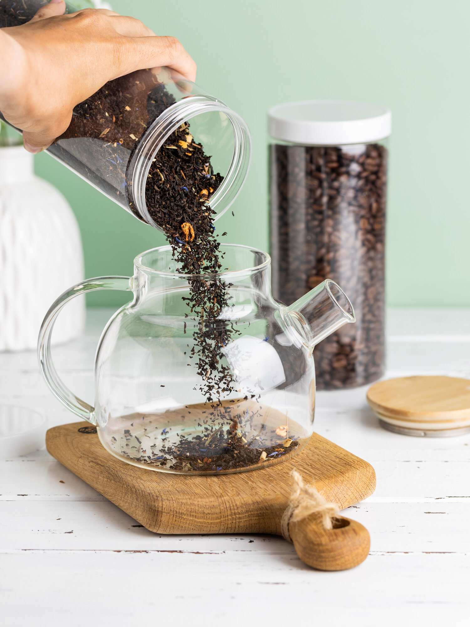 Банка для хранения сыпучих продуктов / соли / специй /чая / кофе 3-х секционная 400 мл 11,5*11,5*20 см "Crystal glass" + стеклянная крышка, стекло