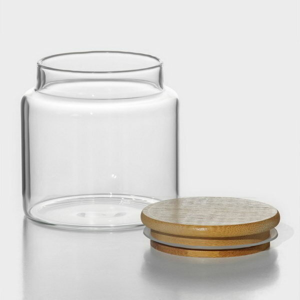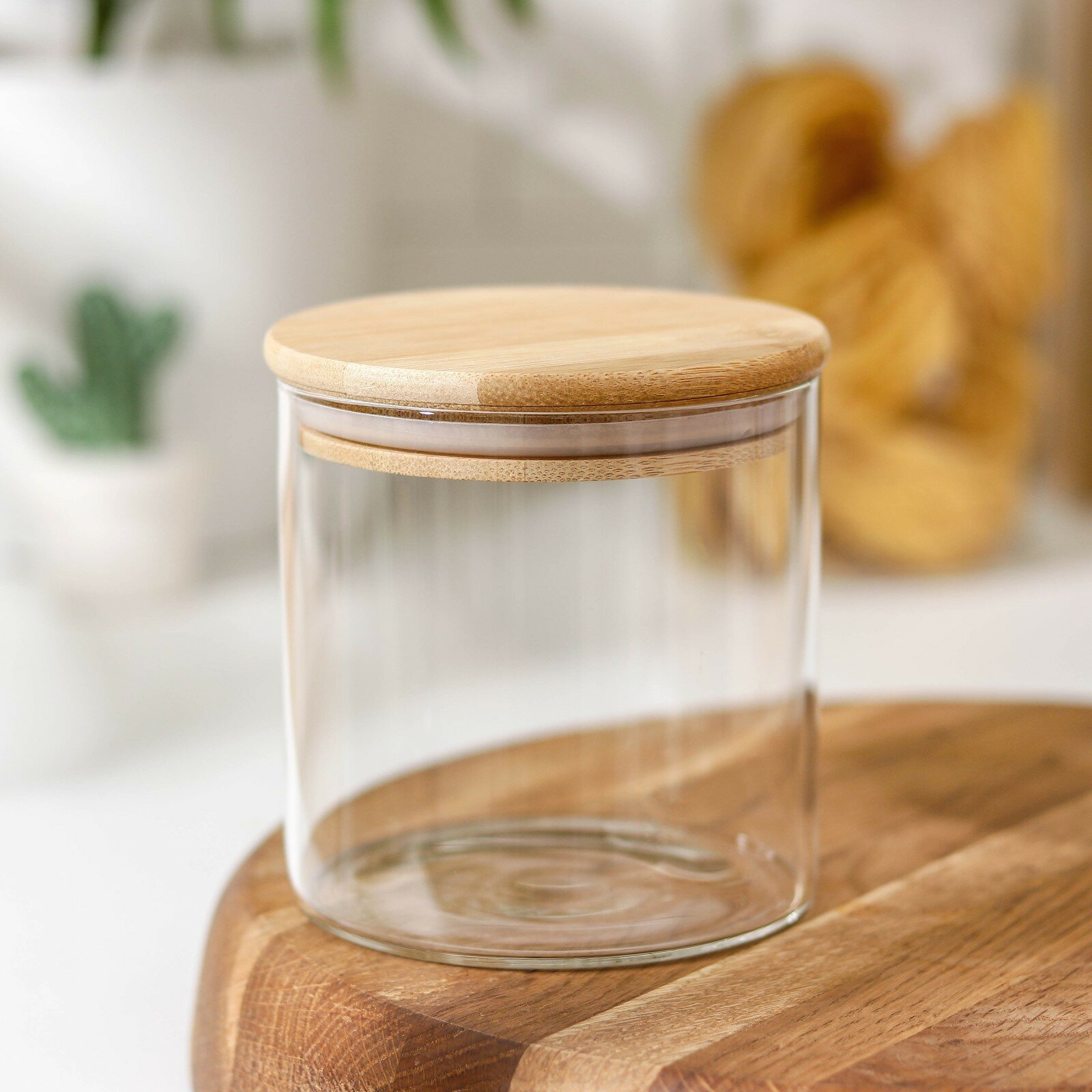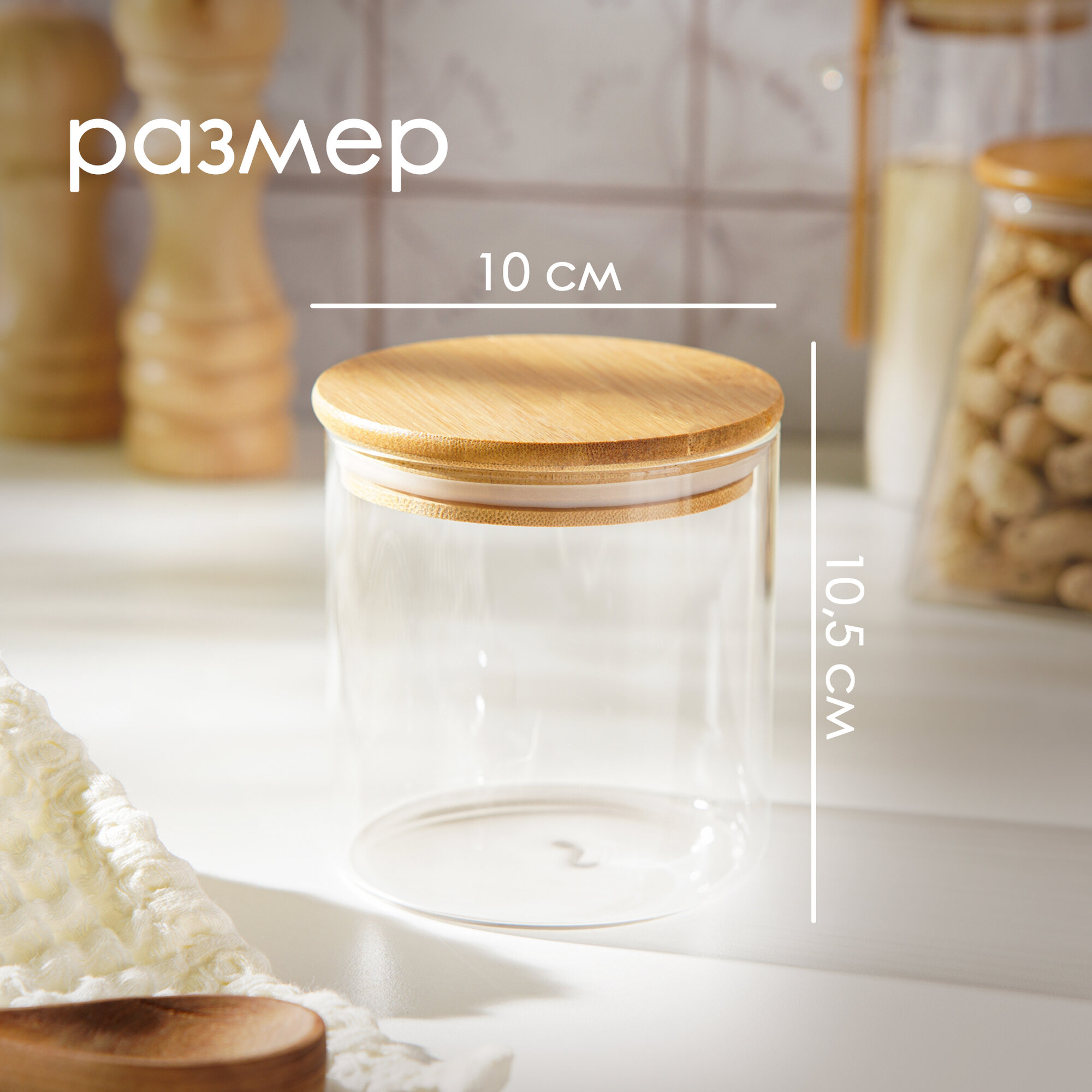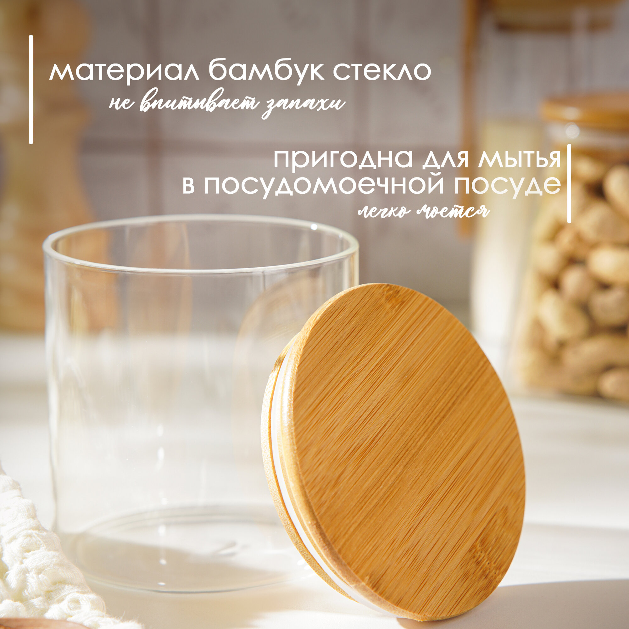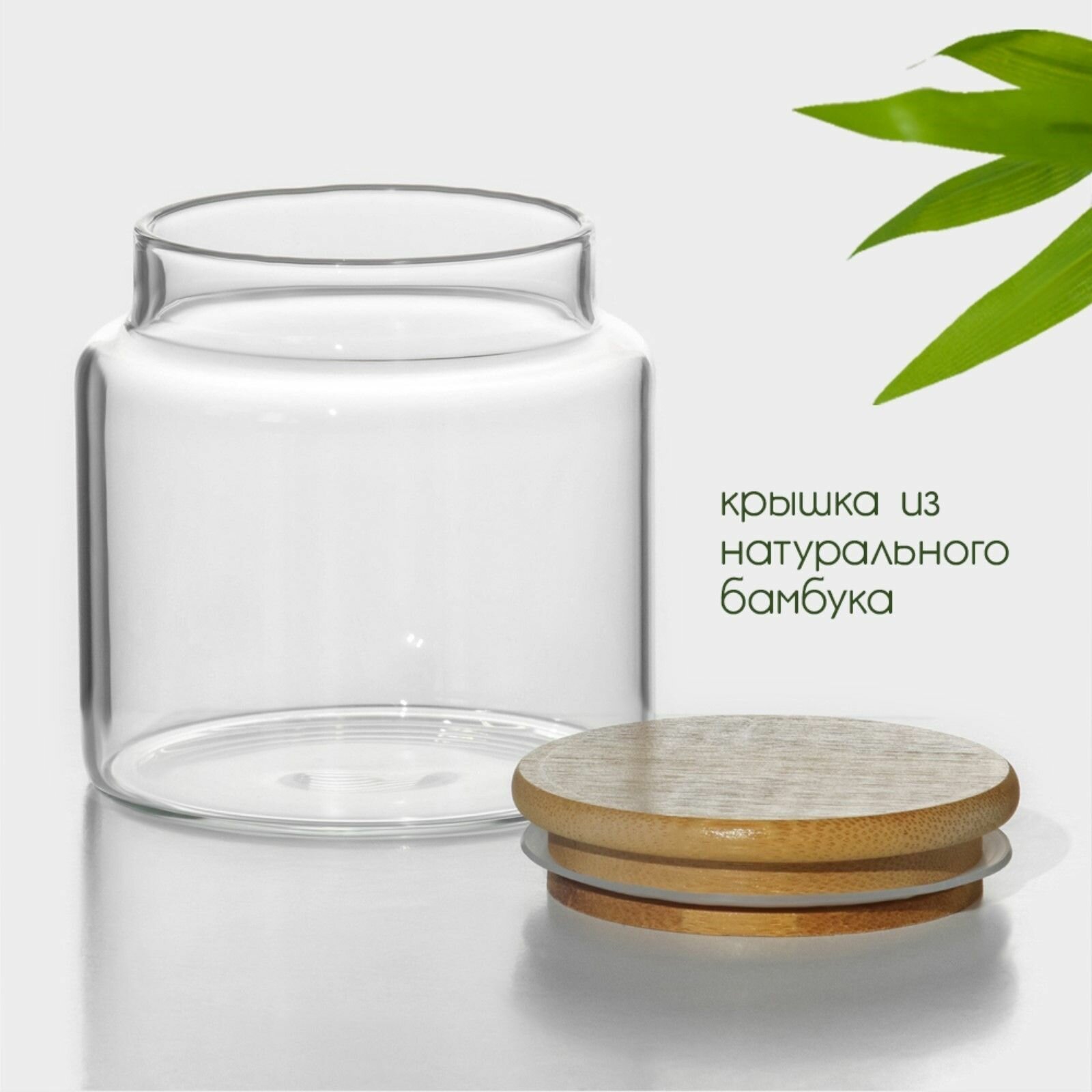 Банка стеклянная для сыпучих продуктов с бамбуковой крышкой BellaTenero «Эко», 700 мл, 8,5×15,5 см