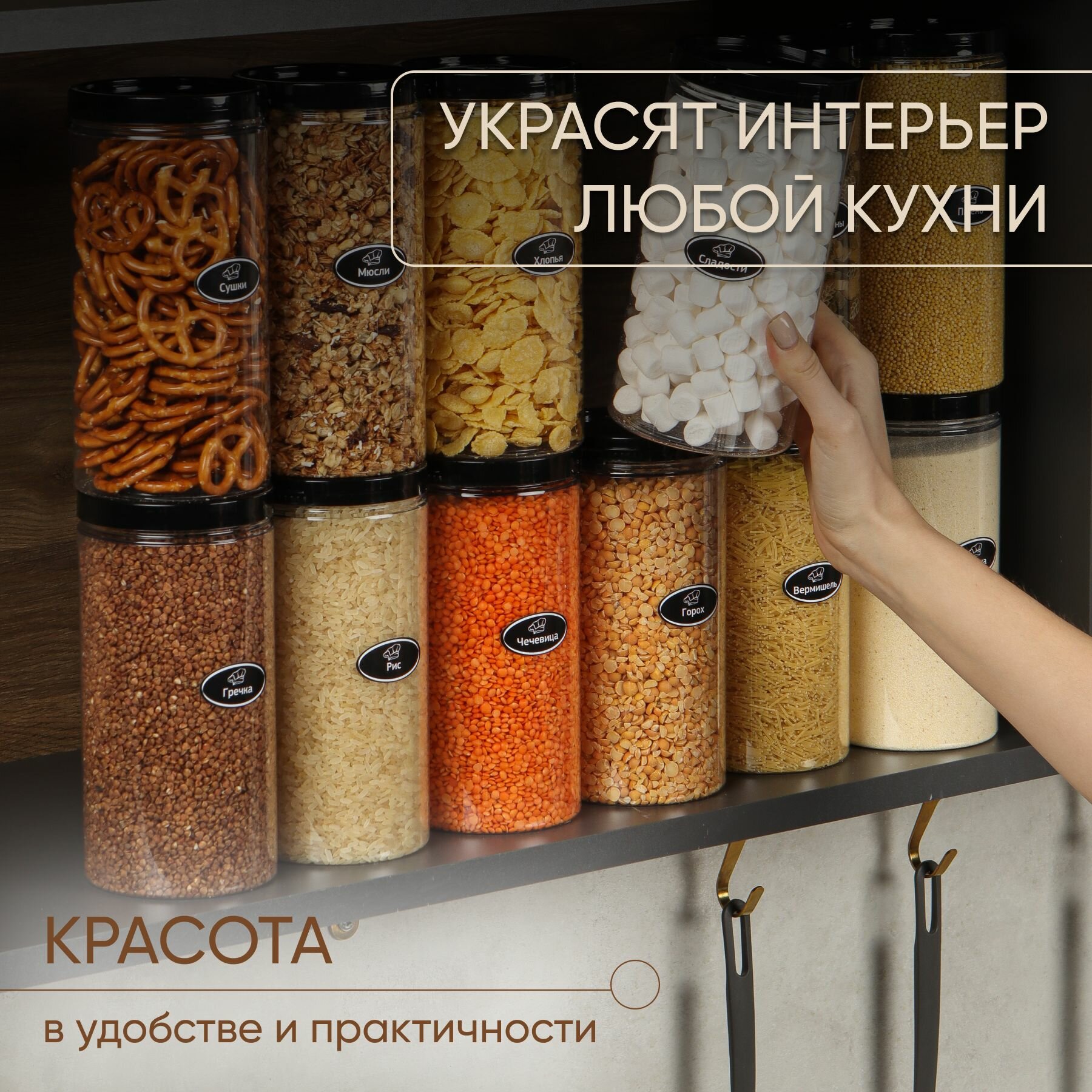 Банки для круп, контейнер для хранения сыпучих и еды набор 8 штук интересное: