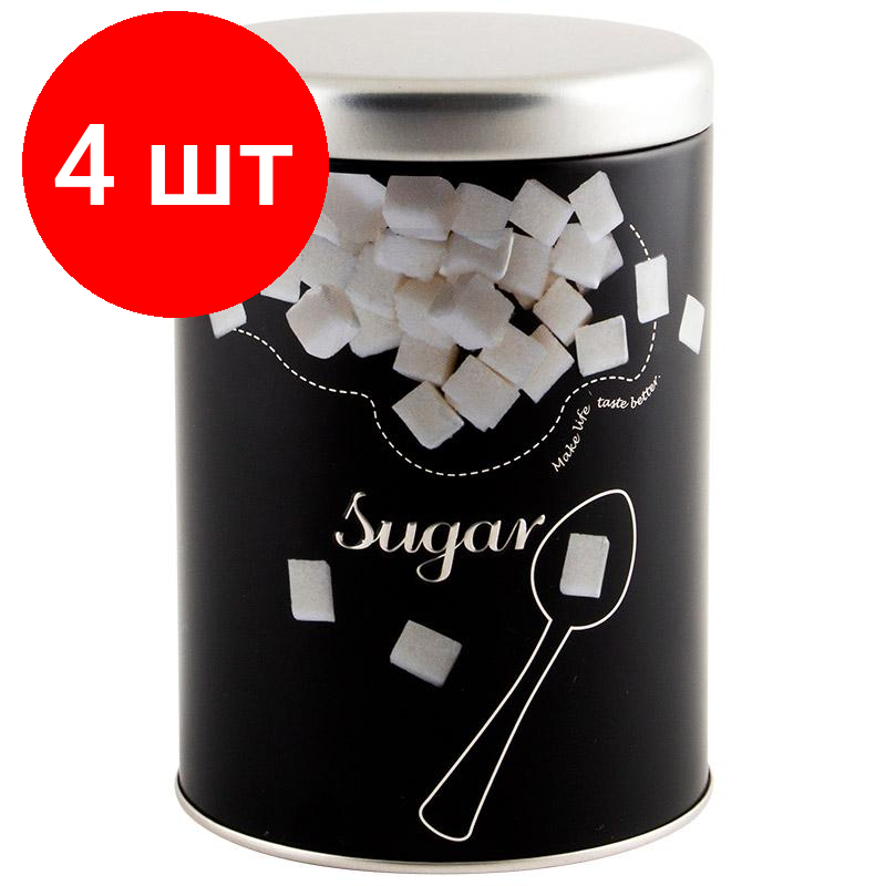 СохранитьКомплект 4 штук, Банка с крышкой металлическая, круглая, объем 900 мл, дизайн Сахар,008617 интересное:
