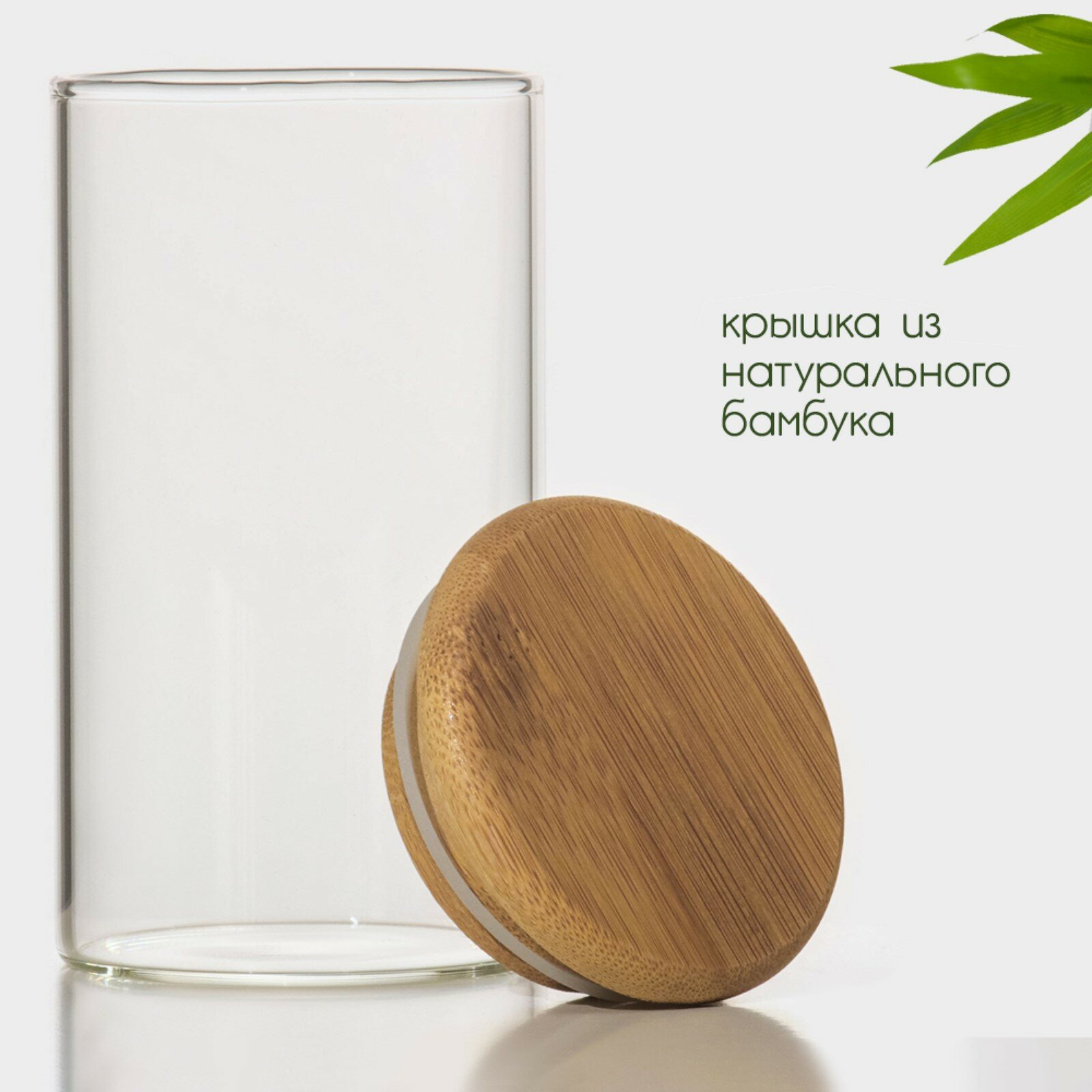 Купить Банка стеклянная для сыпучих продуктов с бамбуковой крышкой BellaTenero «Эко», 250 мл, 5,5×10,5 см