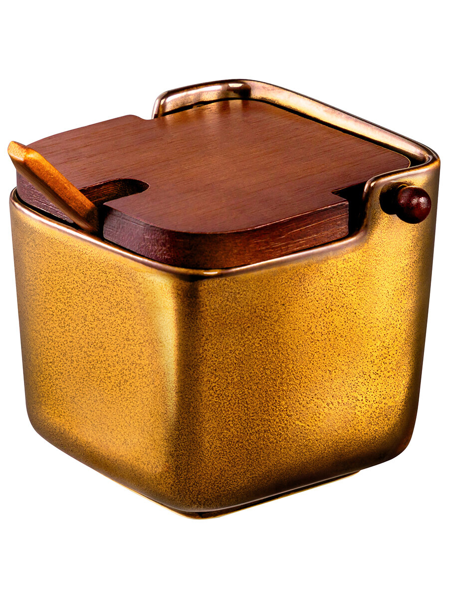 Купить Банка для хранения сыпучих продуктов/ соли/ специй/ чая/ кофе 330 мл Elan Gallery Бронза, с откидной бамбуковой крышкой и бамбуковой ложкой