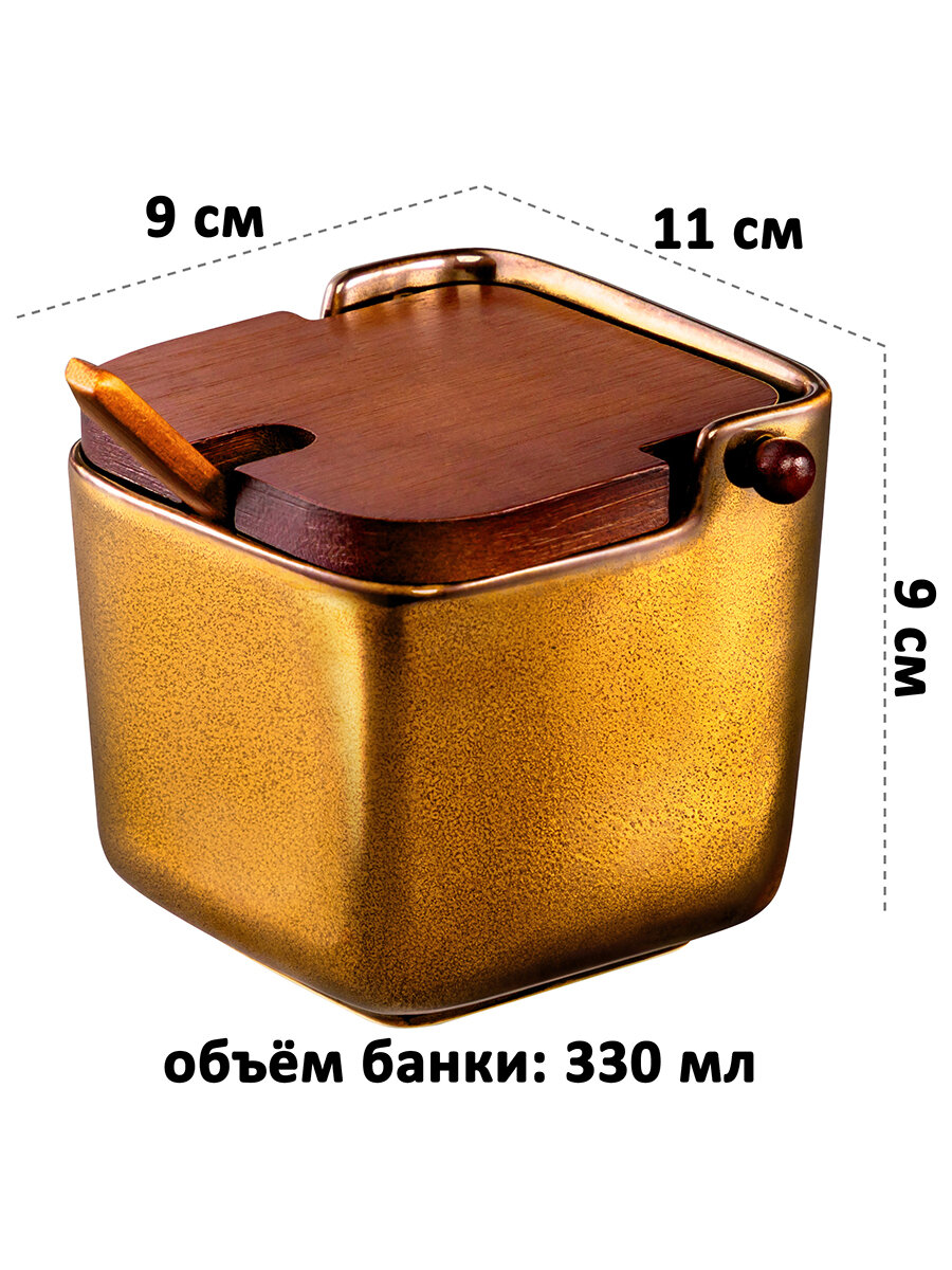 Банка для хранения сыпучих продуктов/ соли/ специй/ чая/ кофе 330 мл Elan Gallery Бронза, с откидной бамбуковой крышкой и бамбуковой ложкой интересное: