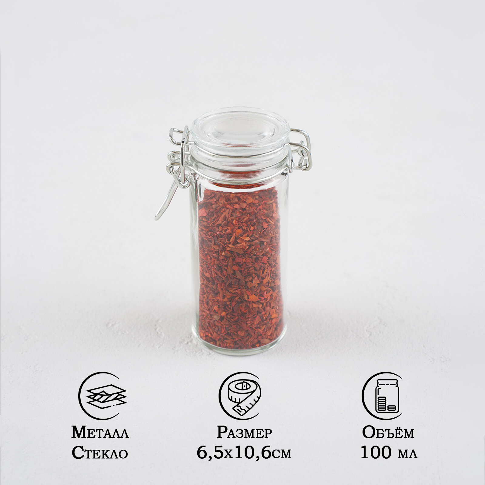 Баночка для специй с бугельным замком «Квадрат», 100 мл